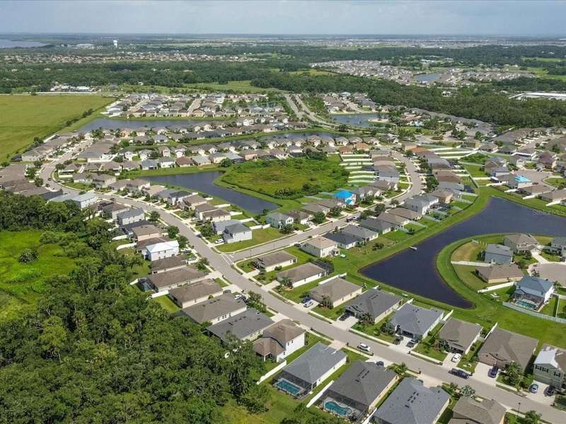 Welcome to your dream home in the peaceful, gated community of Del Tierra! This stunning 3-bedroom, 3.5-bath open-concept residence offers over 2,500 SqFt of thoughtfully designed living space and has been meticulously maintained by the original owner with updates throughout. Key Features Include: New Roof (11/2024), New Carpets in all bedrooms, and Freshly Painted Interior & Exterior. Step inside and immediately be captivated by the breathtaking view of your private backyard oasis, framed by large sliding glass doors that flood the home with natural light. This home blends comfort, elegance, and functionality at every turn. Just off the foyer, you'll find the first bedroom with plush carpeting and a built-in closet with built-in shelving. Adjacent is a full bathroom featuring granite countertops, a tub/shower combination, and elegant ceramic tile. A cozy den or home office with French doors offers privacy and flexibility, ideal for remote work or a quiet retreat. The heart of the home opens to a spacious great room and a chef-inspired kitchen designed to impress. The kitchen features: Stainless steel appliances including LG refrigerator with dual ice maker, GE range, microwave, and dishwasher, oversized granite island with garbage disposal, full-height coordinating backsplash and soft-close wooden cabinetry, Generous pantry with spice rack. Abundant of electrical outlets for your kitchen gadgets throughout the kitchen. The dining area is thoughtfully placed just off the kitchen, perfect for everyday meals or entertaining guests. The great room includes three floor outlets for discreet cable management and is prewired for surround sound. Bedrooms, lanai, and garage are prewired for speakers. Retreat to the luxurious master suite, complete with a tray ceiling, ceiling fan, private lanai access, and two walk-in closets. The en-suite bathroom features dual granite vanities, a soaking tub, a glass-enclosed shower with a bench, and a separate water closet for privacy. The third bedroom makes a perfect guest suite with its own walk-in closet, and a private en-suite bathroom with a granite vanity and walk-in shower. Step outside to your fully screened-in lanai oasis featuring a working hot tub, ceiling fan, and peaceful views of your private backyard. There's even a convenient half bath under air with a granite countertop sink. The laundry room offers wooden cabinetry, a storage room with shelving, and LG washer & dryer, all situated near the entrance to the oversized 3-car garage. The garage boasts epoxy flooring, dual door openers, built-in cabinets, a utility sink, a workbench, and hurricane shutters with hardware. The property also includes a 4-zone irrigation system powered by reclaimed water to keep the landscaping lush and low-maintenance and aluminum gutters. Minutes to SR-64, I-75, and Ft. Hamer Bridge. Close to Gene Witt Elementary (bike ride away). Nearby shopping including Costco, and many more! Residents of Del Tierra enjoy access to a resort-style pool, fitness center, and gated entry all while being surrounded by nature and tranquility. This home truly has it all: elegant design, thoughtful upgrades, and an unbeatable location. Don't miss the opportunity to make this beautiful home yours!