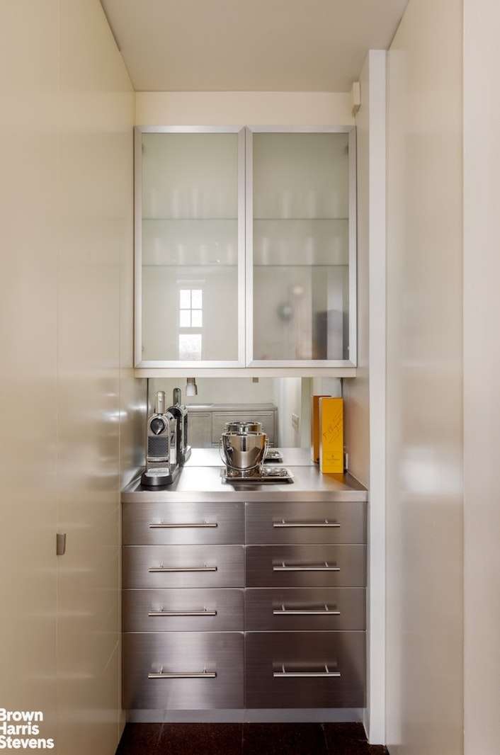 Elegance and the height of modern style are yours in this absolutely turnkey pristine renovated one bedroom apartment. Gracious sun flooded living room with a truly open southern vu of the city. This serene space with high beamed ceilings has been transformed to a modern delight by a top architect and barely used by its owners who live abroad. The living room can be opened to the bedroom and vice versa to create a loft like feel and ingeniously closed whenever you see fit for more privacy.