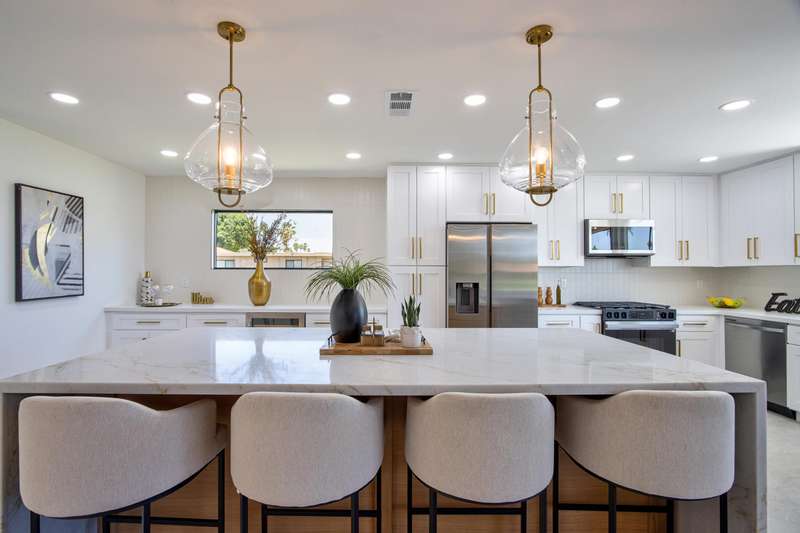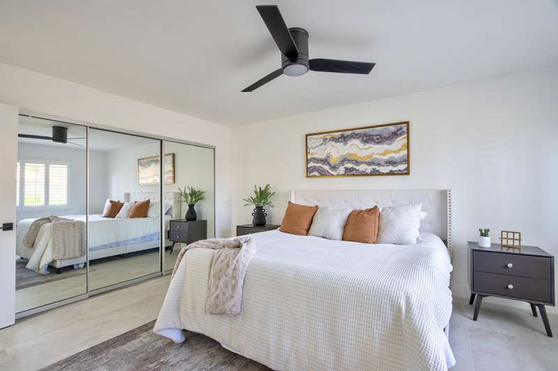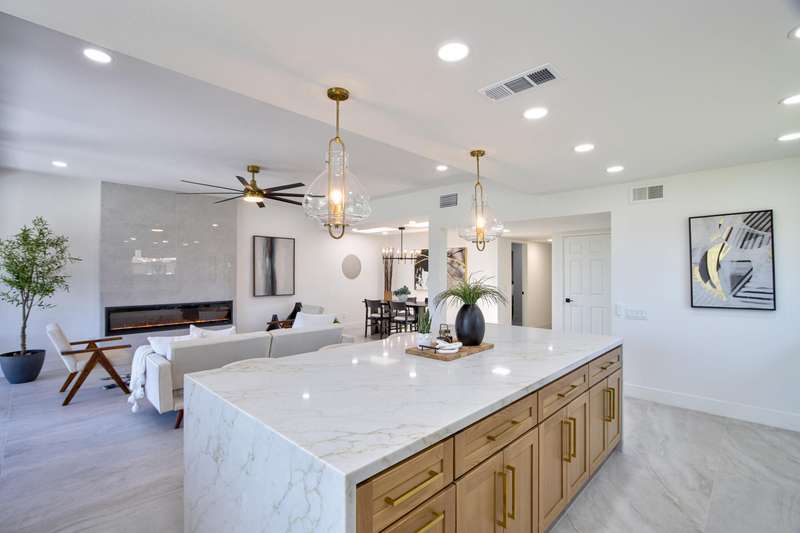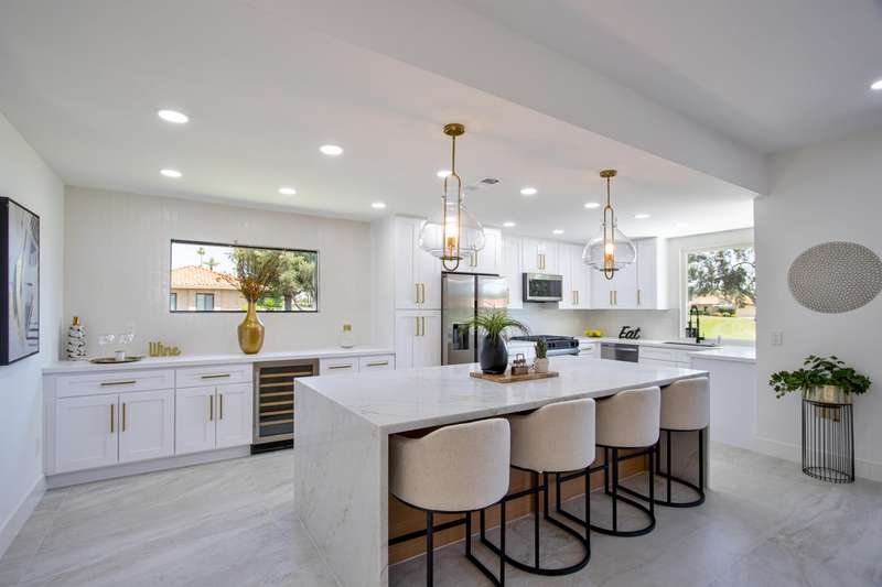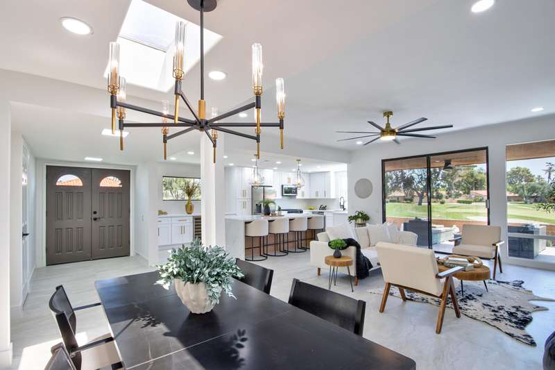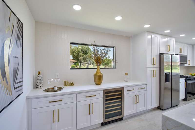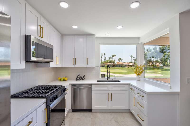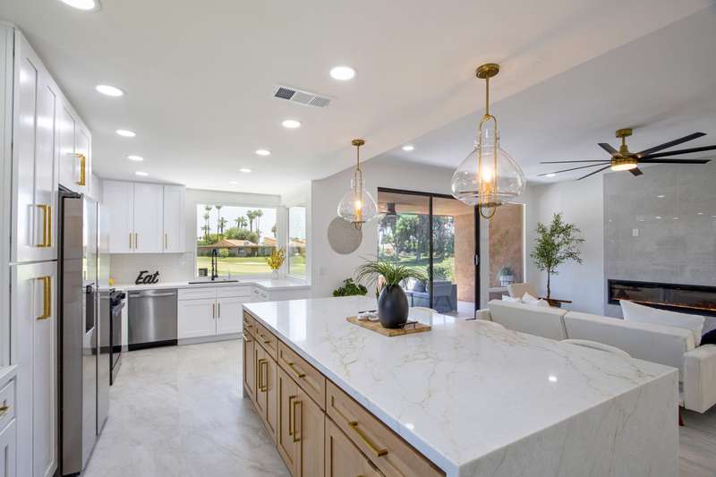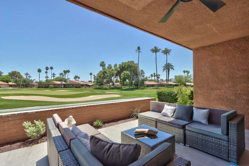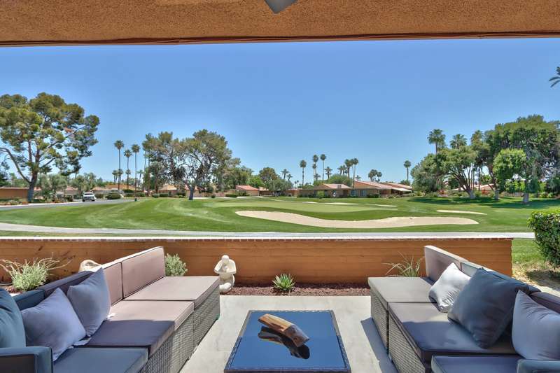 Discover elevated living in this impeccably remodeled 3-bedroom, 2-bathroom condo, ideally situated on a private corner lot overlooking the par-3 6th hole. Set back from the green for added tranquility, the home combines thoughtful design with premium upgrades throughout.Step inside to a spacious open floor plan, where every element has been carefully curatedfrom the dramatic 24x48 stone tile flooring to the striking floor-to-ceiling fireplace. The chef's kitchen is a centerpiece, featuring quartz countertops, an oversized island, and soft-close cabinetry that marry style with function.The spa-inspired bathrooms offer a serene escape, adorned with designer fixtures and sophisticated finishes. The master suite provides a peaceful retreat with a private en-suite and generous closet space, while two additional bedrooms offer flexibility for guests, a home office, or creative pursuits.Energy efficiency is a plus, thanks to assumable leased solar panelsan ideal solution amid rising utility costs.Enjoy breathtaking fairway views and the serenity of lush surroundings, perfect for relaxing or entertaining. As a resident of Sunrise Country Club, you'll have access to world-class amenities including golf, tennis, pickleball, fitness center, multiple pools, and on-site dining at the Grill and Dining Room.Located in the heart of Rancho Mirage, you're just minutes from premier shopping, entertainment, healthcare, and Palm Springs International Airport.