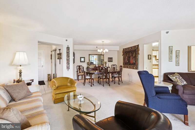 Don't miss this incredible opportunity to own this highly sought after spacious 2-bedroom, 2 full bath ""J "" Model (1,317 SF) condo located in the desirable Greens at Leisure World luxury building. This beautiful unit is nestled within the serene, gated community of Leisure World. The building provides security and comfort with a welcoming updated lobby and central mail area. This beautiful condo offers lots of natural lighting, ceramic tile foyer, large coat & storage closet, generous sized primary bedroom with walk-in closet plus an additional closet & dressing area, primary bathroom has walk-in shower & updated vanity. The second bedroom has 2 closets with an exit to the enclosed sunroom. Hall bath has an updated vanity and tub/shower. Kitchen has space for a table & chairs. The large living and dining room area make it perfect for entertaining your guests and you'll enjoy the spacious sunroom off the living area with lovely views of trees & the golf course. Condo has in-unit washer & dryer located in separate closet. The owners have lived here happily for over 30 years, and the unit has been pet & smoke free. Unit comes with an assigned garage parking space (#4-82) just steps off the main lobby in the South Garage. Additionally, the unit comes with a storage room (#41) and storage cage (#23) which conveys with condo. Seller will consider selling the beautiful furnishings within the condo. Leisure World provides residents with an array of incredible amenities that include gated entrances, security, golf course, tennis, pickleball, swimming, fitness center, clubhouse, meeting rooms, walking paths, library and dining area. Conveniently located to nearby shopping, restaurants and banking. Don't wait on this one!