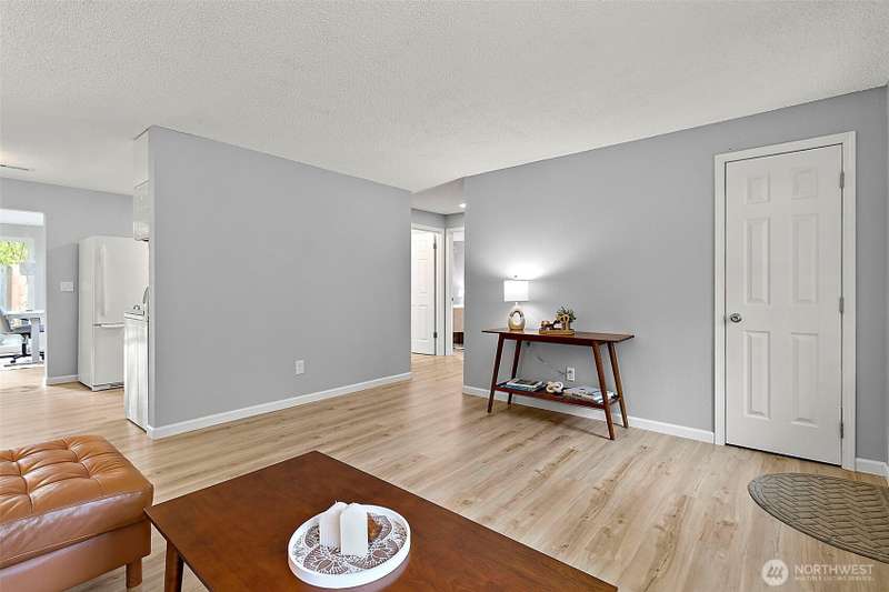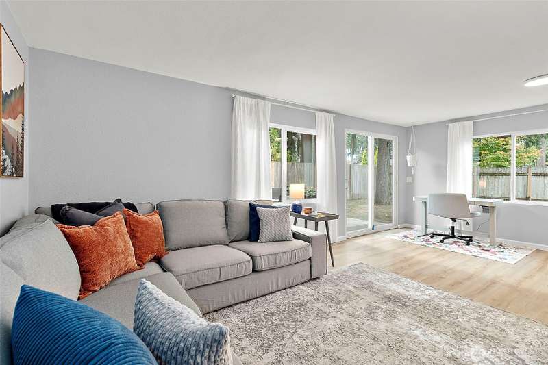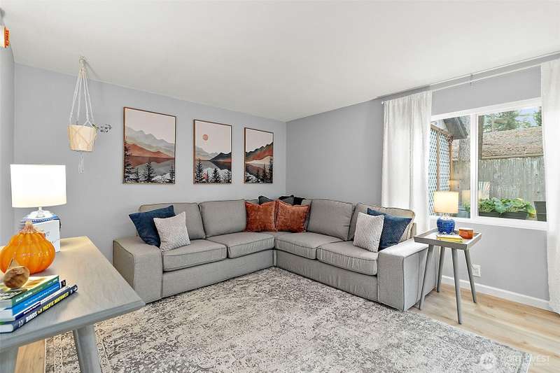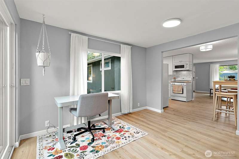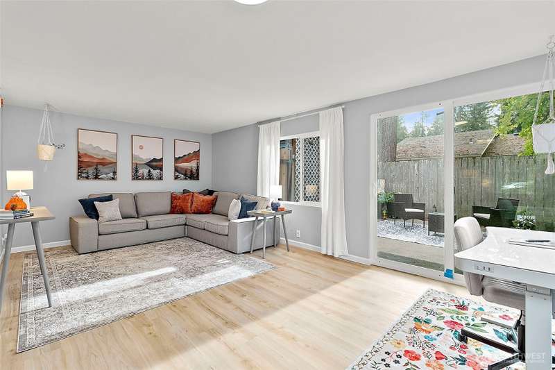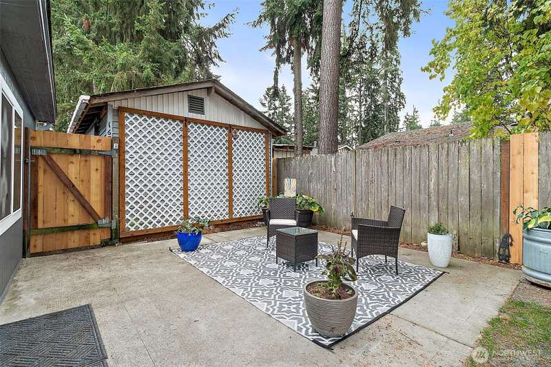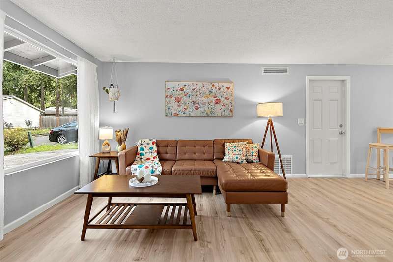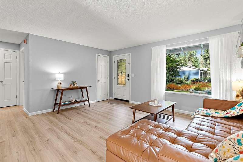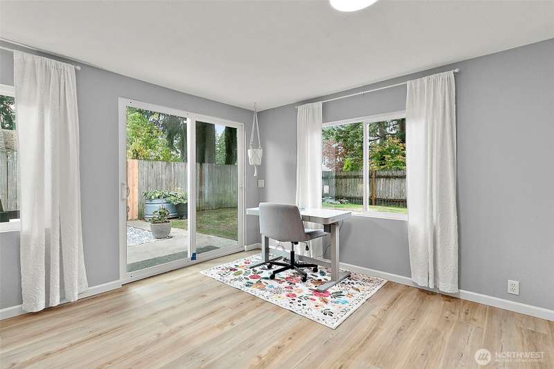 Charming corner-lot rambler in Timberlane with stylish 2025 updates throughout! Enjoy peace of mind with a new roof, fresh interior and exterior paint, waterproof vinyl plank flooring, and new gutters. Two spacious bedrooms and an updated full bath are bright and welcoming. The bonus room at the back provides flexible space for hobbies, a home office, or a media room, and opens to the fully fenced backyard with a patio — perfect for pets or play. The one-car garage, two-car driveway, and RV parking offer plenty of space for vehicles. An outbuilding and all appliances stay! Located in a community featuring a pool, play area, and clubhouse. Move-in ready, beautifully maintained, and perfectly situated for comfort and convenience.