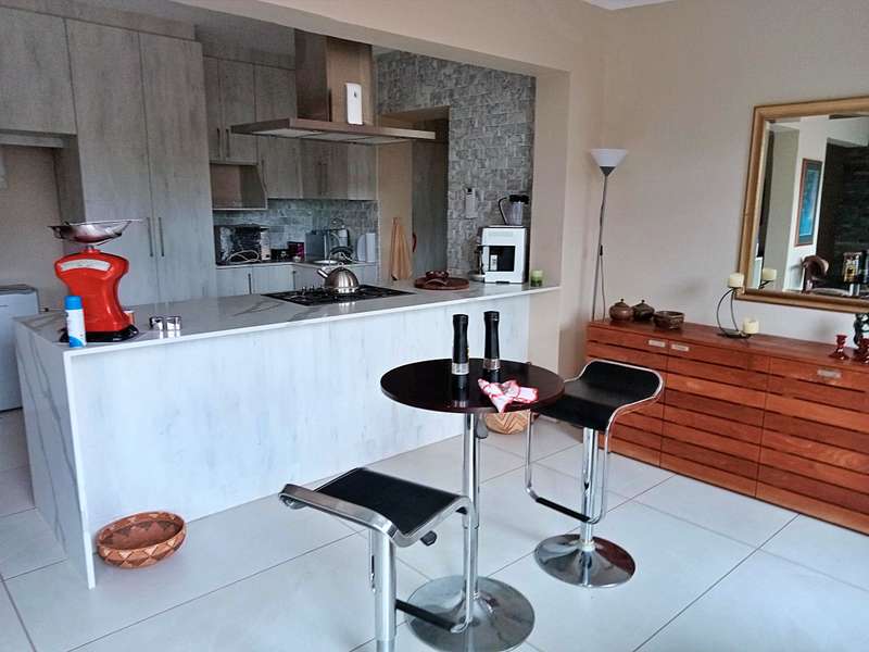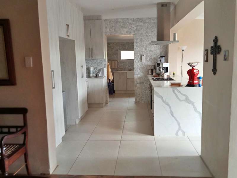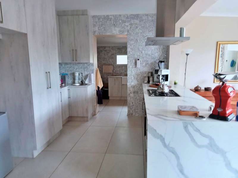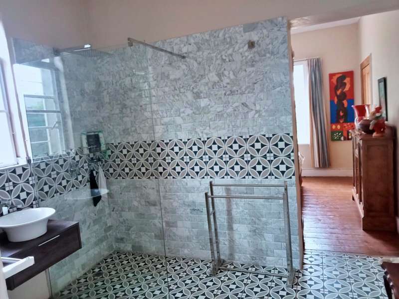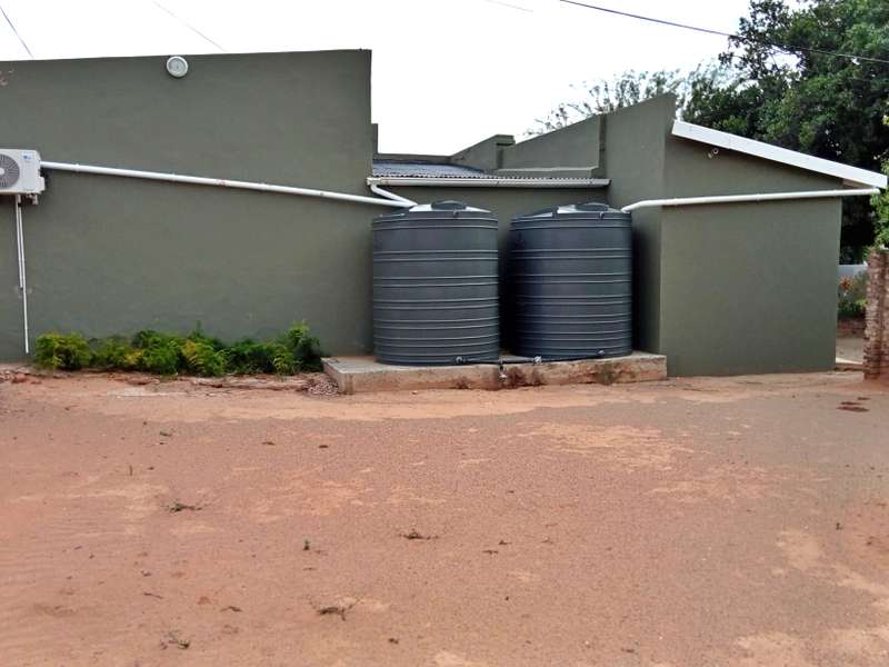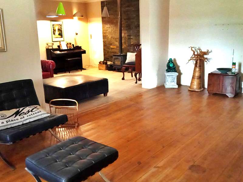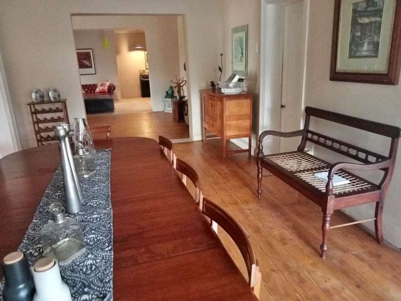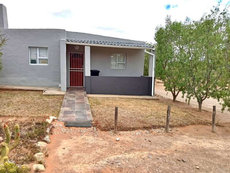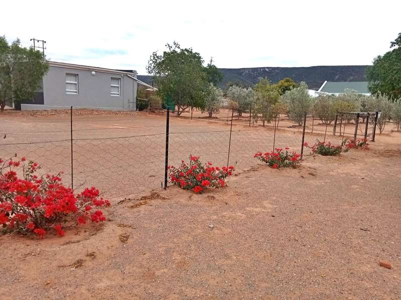 Would you like to move to the Karoo into a secure home with all the modern features and still experience the warmth of a bygone era? This spacious 5- bedroom home situated on 5551m² with three modern bathrooms and a newly appointed kitchen offers you an opportunity to live that dream. Situated on a secure panhandle erf with access to the main road the house offers ample security features to make your stay even more carefree in a town with a very low crime rate. Flanked by an olive grove on the one side and a new plantation of trees the property features a two- bedroom granny flat with small bathroom and kitchen, ideal for renting out or accommodating an elderly family member. The open-plan living area has wooden floors, and the five bedrooms are easily accessed from the living area. The kitchen opens on to a secure shaded braai area. The master bedroom has built in cupboards and an en-suite bathroom. The two wood or coal-fired stoves in the living space add a cosy feeling during the winter. The home has a 15-kw solar system with three 5.6 kw batteries that renders the property independent of Eskom. The home has 5 Jo Jo tanks and a deep underground cement tank for water storage.