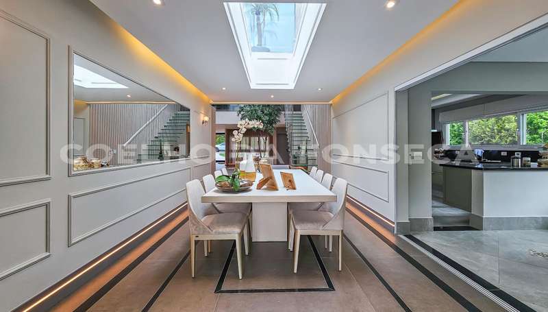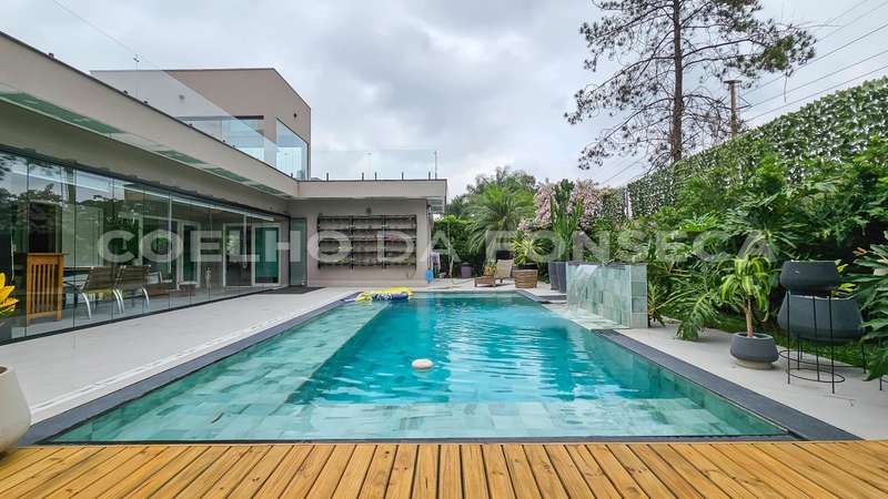 Casa no condomínio TAMBORÉ III, com 477m² área construída, 5 dormitório(s), 5 suíte(s), 8 vaga(s), 8 banheiro(s), piscina, ar condicionado, dep. de empregados, reformado (a), varanda, aquecedor solar, pé direito duplo.