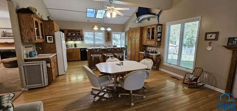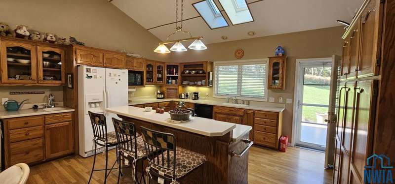 This one~of~a~kind home offers space, charm, and serenity?nestled on two lots with trees, wildlife, and bird watching galore. With 4 bedrooms, 4 bathrooms, and a 3~car garage, theres room for everyone and everything. Enter the main foyer with parquet wood flooring and youll find two gorgeous wood~burning fireplaces for those chilly fall days that are just around the corner. The first one is located in the huge, eat~in kitchen with island breakfast bar, skylights, door to composite deck, vaulted ceiling, hardwood floors and separate food prep station with sink. The second one is in the main living room with carpet and beautiful windows. Separate door to Owners Suite composite deck. Open to the living room you will find a dedicated dining room perfect for elegant, chandelier lit entertaining.. The primary owners suite on the main level features private access to composite decking perfect for early morning nature 101. Whimsical touches, like a transom above the main door, are found throughout this home. The updated bath has a tiled shower with glass doors, double sinks, large linen closet and ginormous soaking tub!! Grab a a book and a candle and you may never want to leave!! The main floor laundry adds convenience located just as you enter the house from the garage. Three LARGE additional bedrooms and a full bath upstairs, with a sky light in the shower/tub surround, and double sinks, provide great separation of space. The lower level offers a well lit family room and a unique train room?a true conversation piece that adds to the homes character. (Set not included, but too cool not to mention!!). Outside, enjoy the fenced yard, ample turnaround space, and the tranquility of nature from every angle. This rambling, character~filled home is a rare find?charming, spacious, and surrounded by beauty. Pride of ownership at every turn with exceptionally well maintained features. What are you waiting for? All aboard!! Its time to come HOME!!!!!