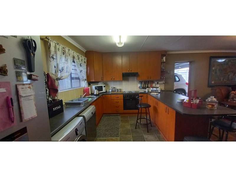 This property is in pristine condition! Located in a quiet area of Humansdorp, close to the high school and hospital. The fully tiled open plan kitchen, lounge and braai area with modern finishes looks absolutely stunning. The home has ample cupboard space. The two spacious bedrooms both have en suite bathrooms and the light fittings have built in heaters perfect for the cold winter nights. There are three garages, all with remote controlled doors and direct access into the home. One of the garages is tiled and is perfect to change into a workshop or a bedroom. Do not miss this opportunity to own this charming home, contact me today to arrange a viewing.