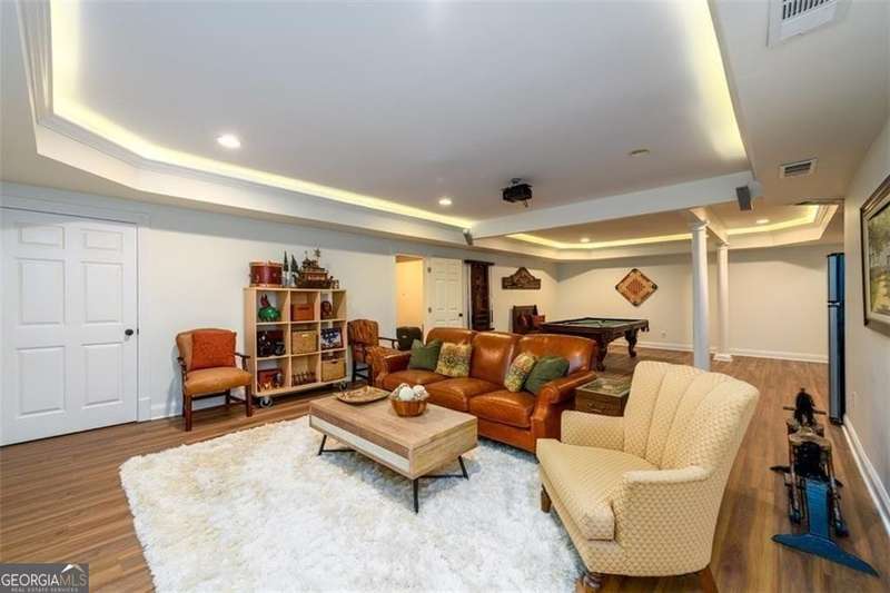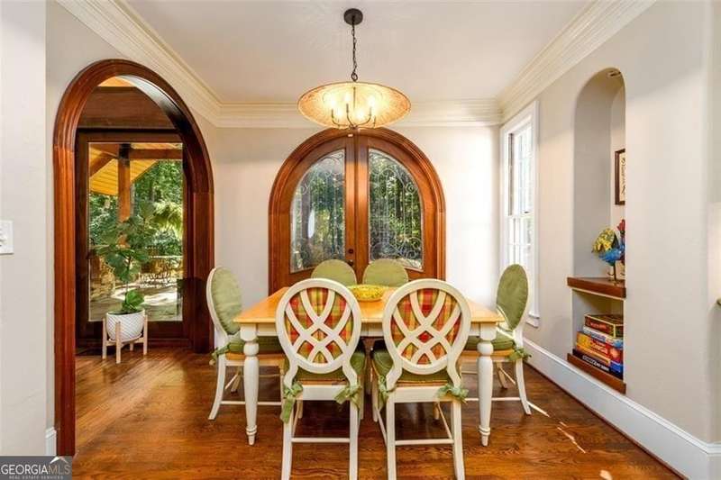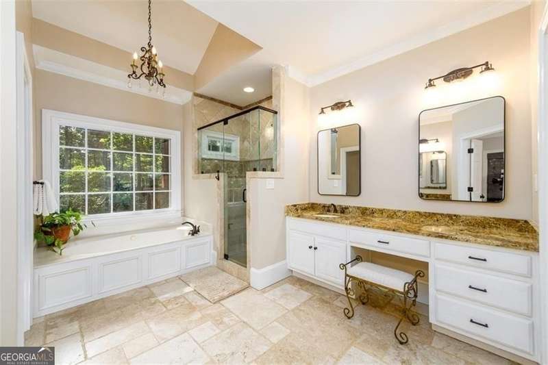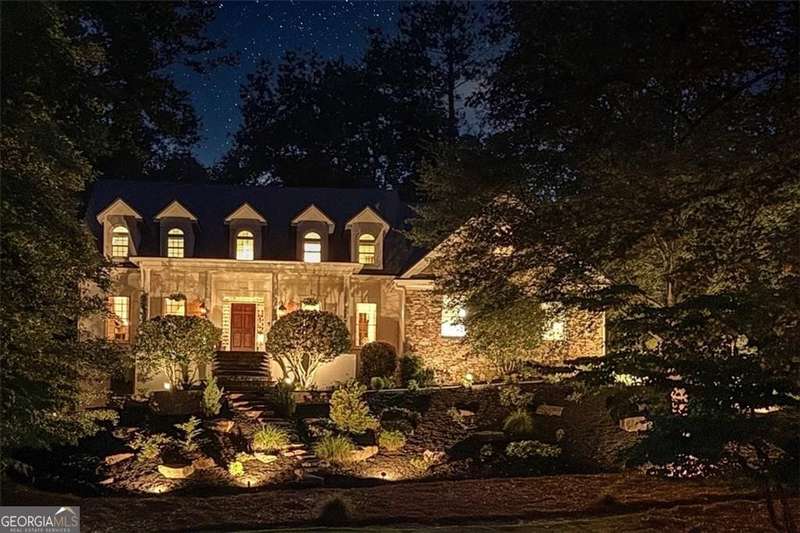 Park-Like Retreat in the Heart of Johns Creek! The beautiful relaxing veranda elevates this property to a one-of-a-kind gem you will adore! Visit today to enjoy the stunning veranda during our Georgia Autumn season. Step into timeless elegance with this exceptional 5,000+ sq ft estate nestled on over an acre of beautifully landscaped grounds in one of Johns Creek's most sought-after neighborhoods-known for its safety, top schools, and vibrant lifestyle. Set on a raised elevation, the home boasts breathtaking curb appeal, with custom fully irrigated landscaping, landscape lighting, and a wide front porch that welcomes you into a world of warmth, luxury, and function. Inside, soaring ceilings over 20 feet high in the great room frame a mahogany wall of windows that draw your eye to the stone and timber veranda overlooking the spectacular outdoor setting. The open floor plan with hardwood floors offers effortless flow, yet maintains a cozy, inviting atmosphere perfect for both grand entertaining and intimate evenings. At the heart of the home is a chef's dream kitchen-commercial-grade appliances, copper farmhouse sinks, custom cabinetry, and expansive prep space for everything from small dinners to large-scale entertaining. A large walk-in pantry with laundry hookups provides one-level living flexibility, complementing the spacious main-level primary suite, complete with a sitting area, custom closet cabinetry, and luxurious bath. Upstairs, you'll find three generously sized bedrooms, two full baths, a charming playroom or art studio, and a full laundry room. The finished terrace level offers incredible versatility with a private in-law suite, full kitchen area, gym, workshop, theater, and game room-perfect for multigenerational living or serious entertaining. Step outside to your private sanctuary: a sprawling veranda with stone flooring, pine tongue-and-groove ceilings, hand-carved mortise and tenon framing, and wood trusses. The outdoor kitchen features a Big Green Egg, gas grill, fridge, ice maker, expansive serving/dining counter and custom lighting-ideal for unforgettable gatherings. Stroll winding paths through the backyard, relax by the self-draining, large stone fire pit surrounded by natural boulder seating, or enjoy the magic of custom lighting under the canopy of stars and trees. Every detail has been meticulously maintained-fresh interior and exterior paint, updated systems, whole-house on-demand water heating, and a new roof in 2023. This incredible home is truly move-in ready. Located in Johns Creek-named the #1 Best Place to Live in the U.S. by U.S. News & World Report in 2025-this home is just minutes from top-ranked public and private schools, the Atlanta Athletic Club, premier golf, dining, parks, river access, and theaters. This is not just a home-it's a lifestyle. *Source: U.S. News & World Report, Best Places to Live in the U.S., 2025-2026*