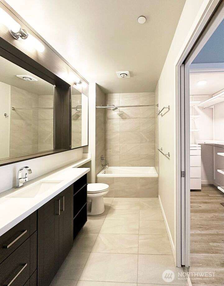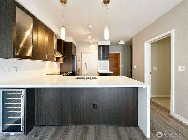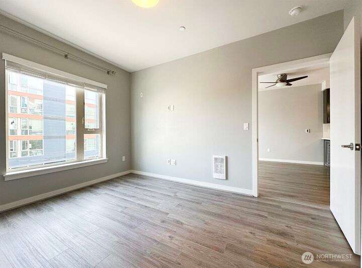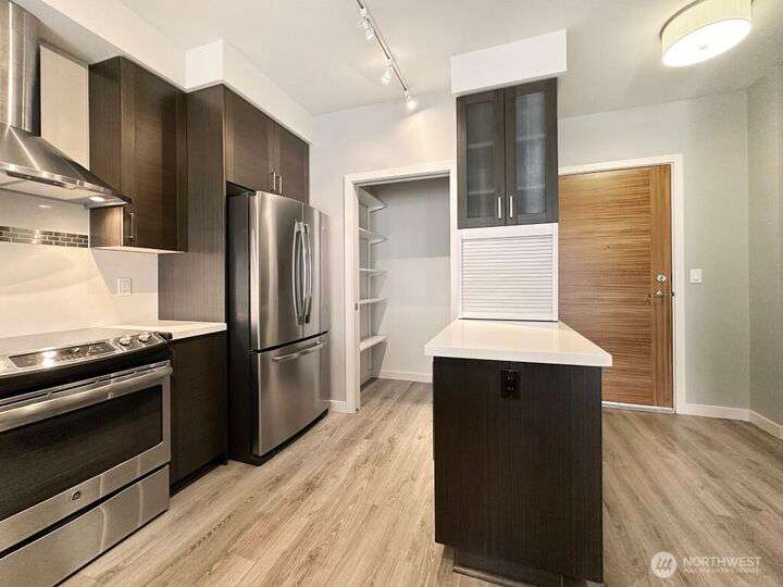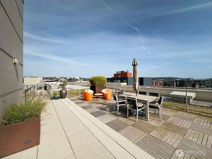 Located in the heart of Ballard, this spacious end-unit condo is located near restaurants, shops, grocery stores, bike trail, movie theater & parks. Features include wood flrs, kitch w/ quartz counters, stainless appliances & walk-in pantry, 1 bedrm w/walk-in closet, bonus area, 1 bath, balcony, & laundry in unit. Building offers rooftop deck w/ gas BBQs, utility sink, tables, umbrellas, and comfortable lounge furniture with gas firepit – perfect for summer entertaining. The nicely furnished lobby includes areas for meetings and lounging + exercise room. Other terms: Tenant pays electricity, water, sewer and natural gas. Renter’s insurance required. One parking space + storage unit included in rent. 2 pets allowed (dogs under 35# or cats).