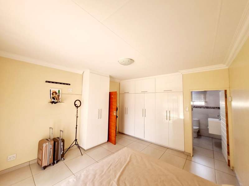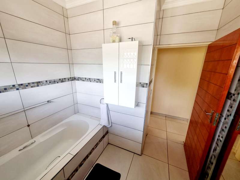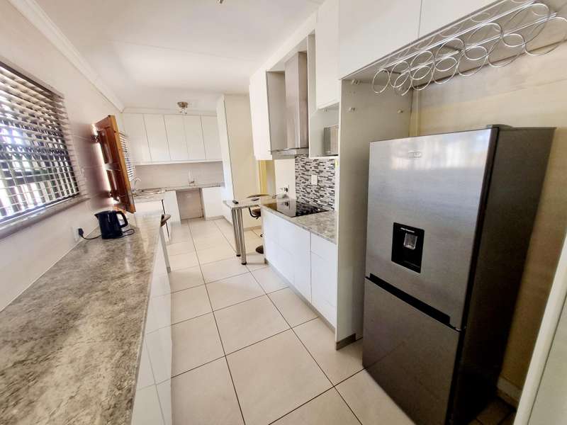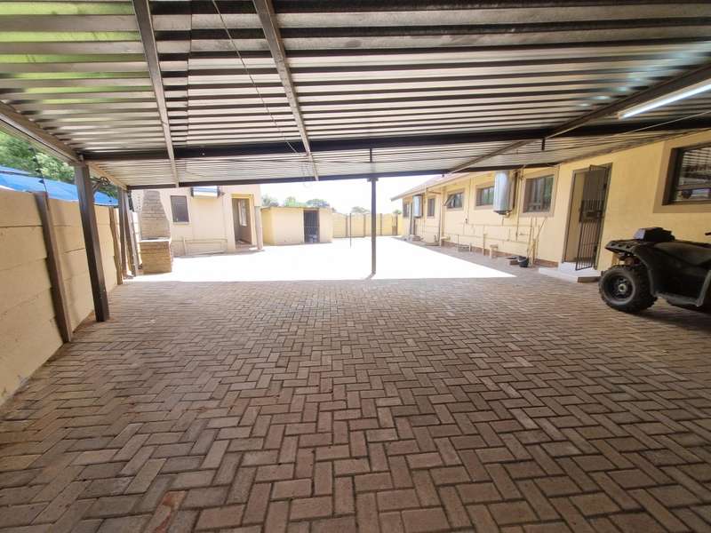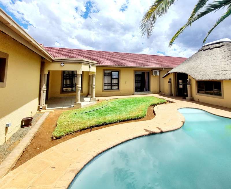 Discover modern living in this spacious family home, offering stylish finishes and excellent security features. Boasting 3 bedrooms, the main bedroom includes an en suite bathroom and sliding doors leading to the pool area, while the 2 additional bedrooms feature built-in cupboards and are serviced by a family bathroom. Enjoy multiple living spaces, including a lounge, dining room, and reception lounge, along with a modern kitchen. Entertain with ease in the thatched roof entertainment area, complete with a built-in bar, braai, and outdoor swimming pool. The property provides convenience with 2 entrances, a double garage, and a spacious carport accommodating multiple vehicles. Additionally, 2 flatlets offer extra income potential or extended family living. This home is a perfect blend of comfort, space, and functionality—your ideal family haven!