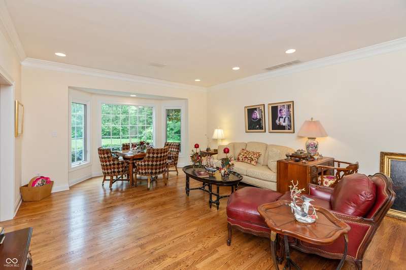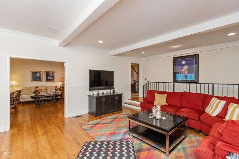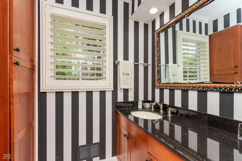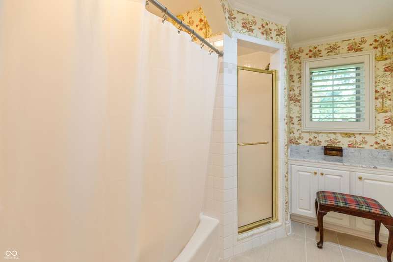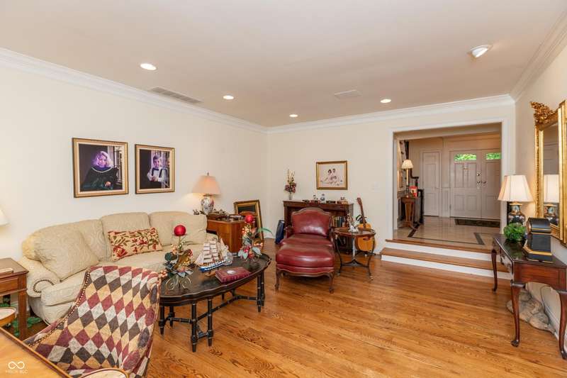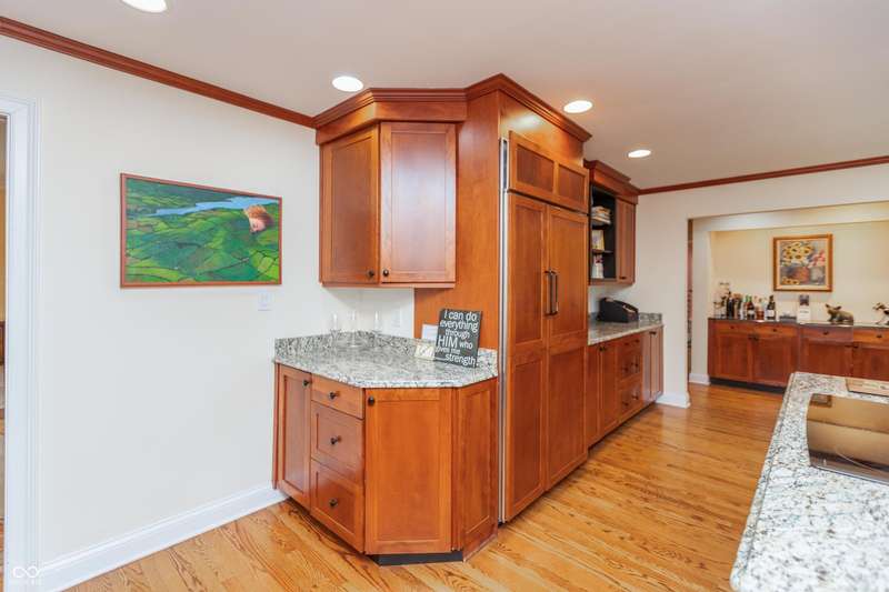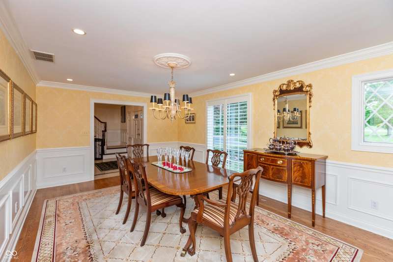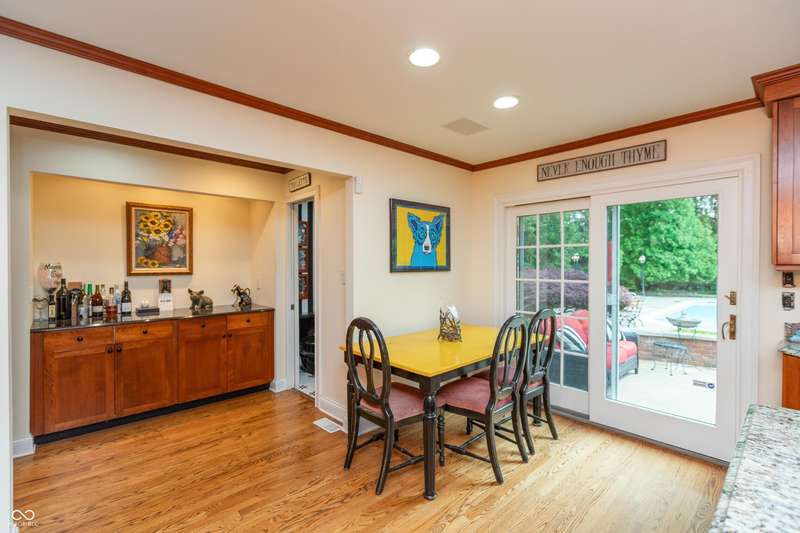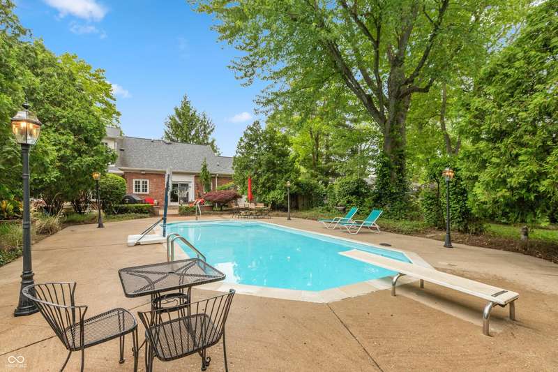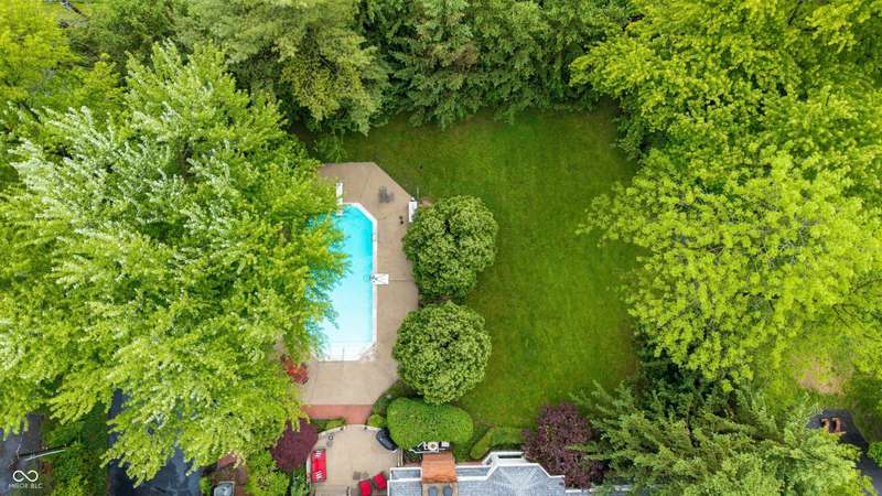 Charming, traditional all brick home just north of Williams Creek on gorgeous lot just shy of one acre! Circular driveway and beautiful Gunite pool. Spacious main floor primary suite. Gourmet kitchen with cherry cabinetry, granite countertops, induction range, Subzero refrigerator, Miehle dishwasher, separate undercounter icemaker and large built in wine cooler. Spacious living and entertaining spaces include sunken family room and living room as well as formal dining room. 4th bedroom is paneled and is currently utilized as a den /library. Hardwood floors in kitchen, dining room, family room, living room and laundry/mud room. Huge laundry/mud room with built-ins and cubbies has access to both back yard and driveway. Unique upstairs with vaulted great room, gas log fireplace, wet bar, bedroom and full bath plus cedar closet. Huge walk in attic space for storage! Plantation shutters. Updates include pool heater (2025), roof (replaced in last three years), HVAC, & crawl space encapsulation. Much of the home was rebuilt in 1999. Private back yard with patio space adjacent to the home and around the pool plus plenty of green space and mature landscaping. Nora area is close by with shopping, restaurants and the Monon Trail!