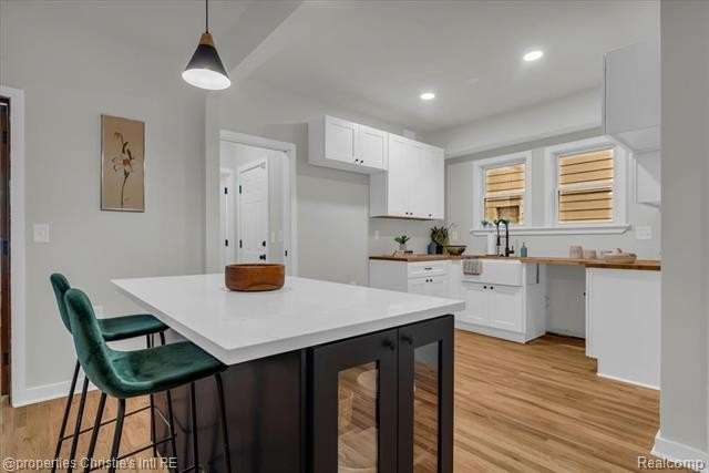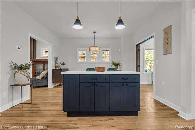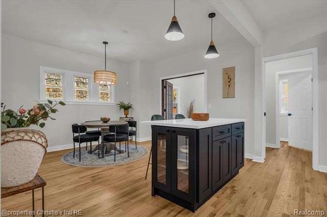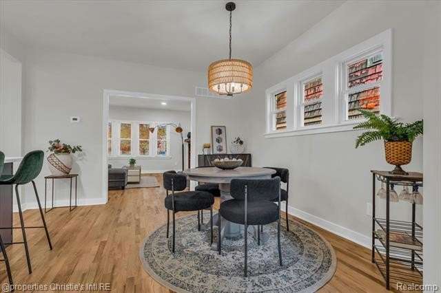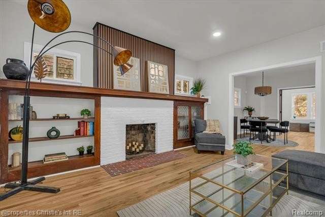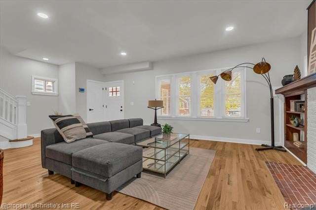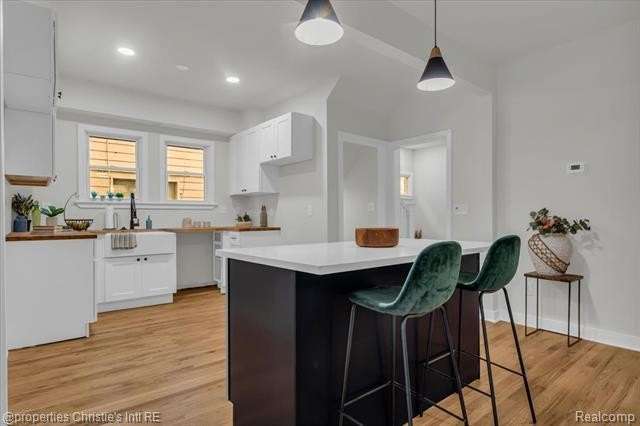 Welcome to Jefferson Chalmers Living! This beautifully updated 3-bedroom, 2.5-bath home blends historic Detroit charm with modern design, offering nearly 1,800 sq. ft. of inviting living space. Step through the vibrant red door into a warm and welcoming interior filled with character. New and refinished hardwood floors run throughout the home, complemented by a cozy living room fireplace framed by custom craftsman bookshelves and original leaded glass doors that highlight the home’s timeless heritage. The kitchen is both functional and stylish. Butcher block countertops pair with a quartz island featuring glass-front cabinetry, adding extra storage with a touch of elegance. Sleek white cabinets, updated lighting, and thoughtful design details make this space ideal for everyday cooking and entertaining. Upstairs, you’ll find spacious bedrooms filled with natural light. The primary suite serves as a true retreat, offering a spa-inspired bathroom with a soaking tub, separate glass shower, and elegant finishes designed for relaxation. Additional highlights include a first-floor laundry, a versatile bonus room with original French doors ideal for a home office or sitting area, a newer roof on both the home and garage, new windows, and a detached 2-car garage. The neighborhood’s lifestyle complements the timeless character of its historic homes. Tree-lined streets and canals lead to the Detroit River. Spend afternoons at nearby waterfront parks, or visit popular spots like Coriander Kitchen and Farm, Atwater Brewery, and LeRouge Boulangerie. In this neighborhood, history, recreation, and modern living come together.