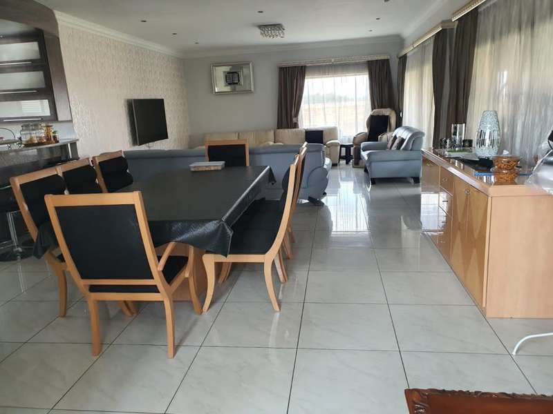 Welcome to your future abode, a place to call home! Nestled in the perfect position, this residence offers an unparalleled blend of quality living and abundant sunshine, creating an idyllic sanctuary for you and your loved ones. From the moment you step inside, you'll be captivated by the sheer beauty and charm exuding from every corner of this exquisite home. Whether you're seeking a cozy retreat or a character-filled haven, this property promises to cater to your desires and needs. A haven for families, this home has been thoughtfully designed to accommodate both the young and the old. Even your furry companions are welcome, as pets find their place in this family-friendly environment. Step into the ground floor, where modern elegance meets functionality. The heart of the home resides in the well-appointed kitchen, complemented by a scullery that adds a touch of convenience to your culinary endeavors. The dining area and lounge 1 provide ample space for entertaining, while bedroom 1, complete with an en suite full bathroom, ensures a private and comfortable retreat for guests. A guest toilet and reception area complete this level, making it a harmonious blend of everyday living and hospitality. As you ascend to the upper level, a pajama lounge invites relaxation and unwinding. Bedrooms 2 and 3 share a full bathroom, offering comfort and convenience. The crowning jewel of this level is the main bedroom, a lavish escape boasting a walk-in closet, an en suite bathroom, and a private balcony. This is your personal oasis, a place to recharge and bask in tranquility. The outdoors seamlessly extend the living space, providing a canvas for leisure and entertainment. Two garages stand ready to shelter your vehicles, while an inviting entertainment area sets the stage for memorable gatherings. An additional extension unveils a bedroom with an en suite bathroom and an adjoining office, catering to your evolving lifestyle needs. The promise of a future swimming pool adds an element of excitement and relaxation to your upcoming days. Don't miss the chance to experience this enchanting haven for yourself. Arrange a private viewing today, and take the first step towards making this remarkable house your cherished home.
