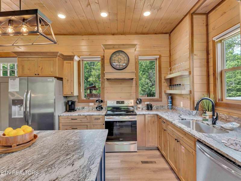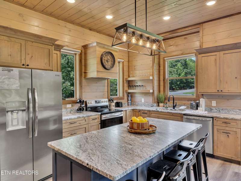 Welcome to 1940 Smoky Cove Road, a newly built luxury retreat located in the highly desirable Smoky Cove community in Sevierville, Tennessee. This stunning 2024 construction offers over 3,600 square feet of thoughtfully designed living space, featuring five bedrooms and six full bathrooms. Ideal for large families or as a high-performing short-term rental, the home sits on a private, wooded one-acre lot just minutes from Pigeon Forge, Dollywood, and the Great Smoky Mountains National Park.Inside, you'll find a spacious open-concept main floor with vaulted ceilings, a fully equipped gourmet kitchen, and a large living area anchored by a beautiful fireplace. Each bedroom is generously sized and includes access to a full bathroom, offering comfort and privacy for every guest. The lower level features resort-style amenities including a private indoor pool, a theater room, and a game area-creating the perfect setting for year-round entertainment.Outdoor living is just as impressive, with expansive covered decks and patios, a hot tub, and wooded views that provide both serenity and seclusion. The Smoky Cove neighborhood also offers community amenities such as a seasonal outdoor pool, picnic areas, and walking trails.Whether you are seeking a luxurious private getaway or a high-income-producing investment property, 1940 Smoky Cove Road is a rare opportunity to own a fully turnkey home in the heart of the Smokies. This home has $6,670.17 booked for the month of July. First year as an STR it made $53,085.21 05/2024 to 05/2025 and has projections of $120,000+ with proper management.