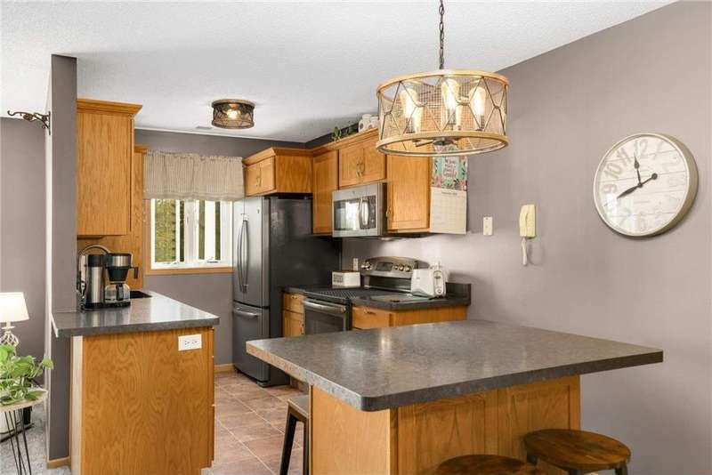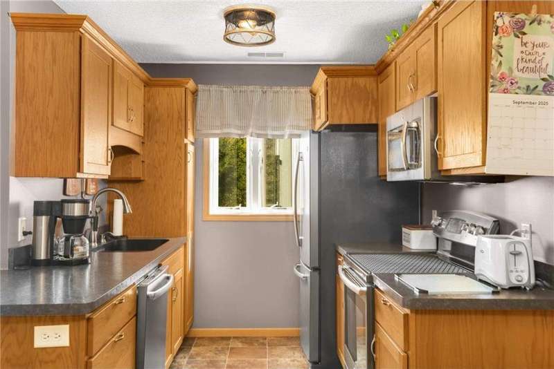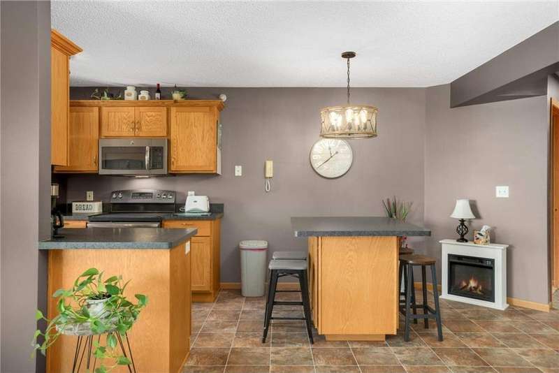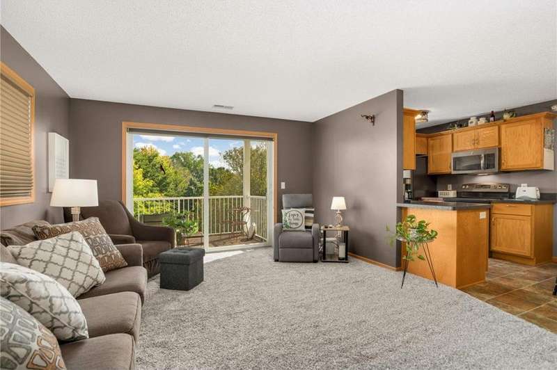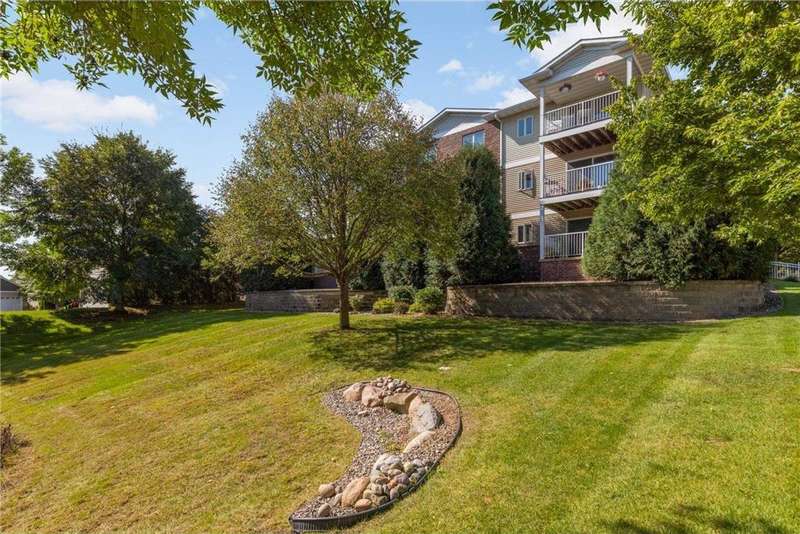 Welcome to this spacious corner condominium in a desirable building with both zero-entry access and an elevator for step-free living. One of the largest layouts in the building, this home features a Kitchen with stainless steel appliances, a pantry cabinet with pull-out drawers, and a window for natural light. The Dining area includes a built-in island, while the bright Living Room offers a large window and a door to the private Deck overlooking green space. The floor plan includes two separate Bedrooms, each generously sized. The Primary Suite has a walk-in closet and a private ¾ Bath, while the second Bedroom is adjacent to a full Bath. Convenient Laundry/Utility Room inside this home. New Central Air Conditioner in 2025, and a one-car Garage add comfort and value. Built in 2005, this building allows a limited number of rental units and this is one of them - making this condo a unique opportunity for both homeowners and investors.