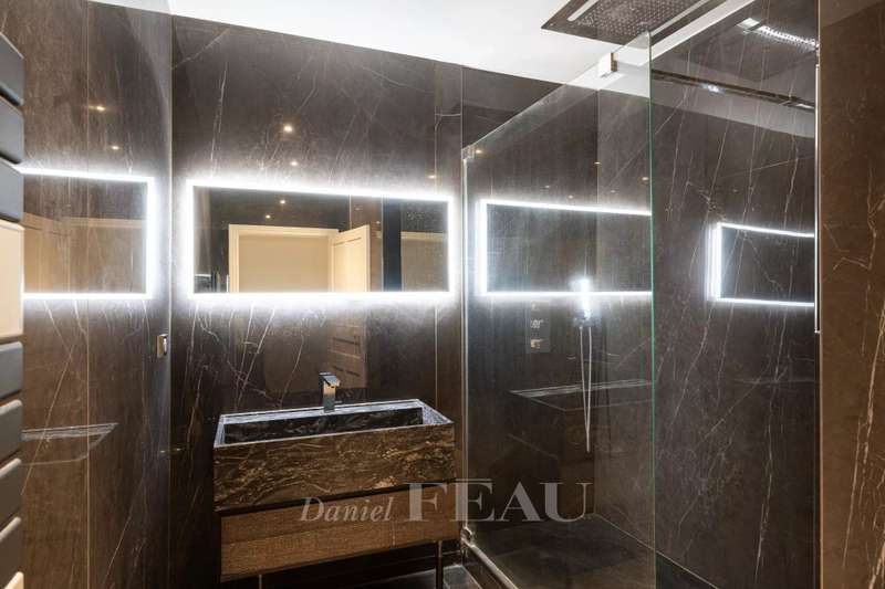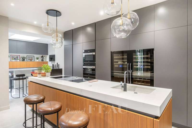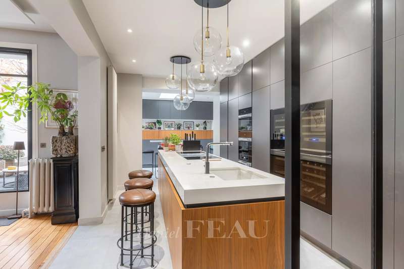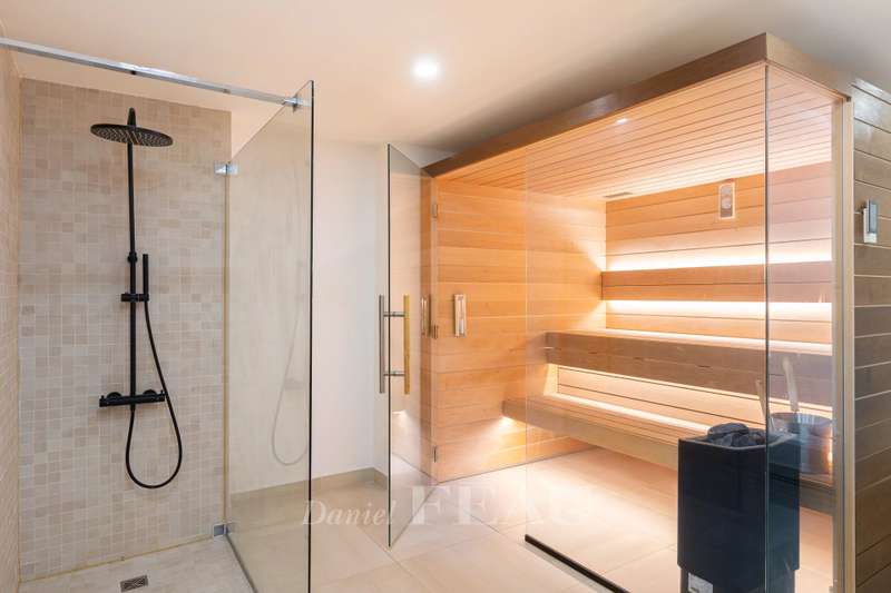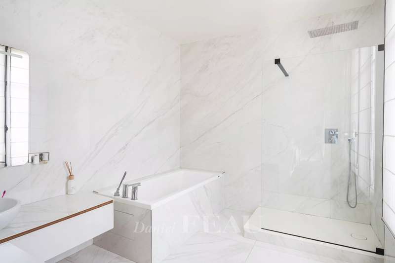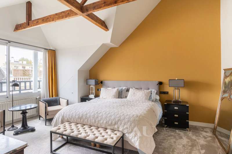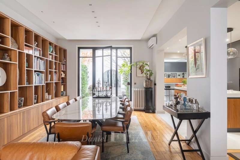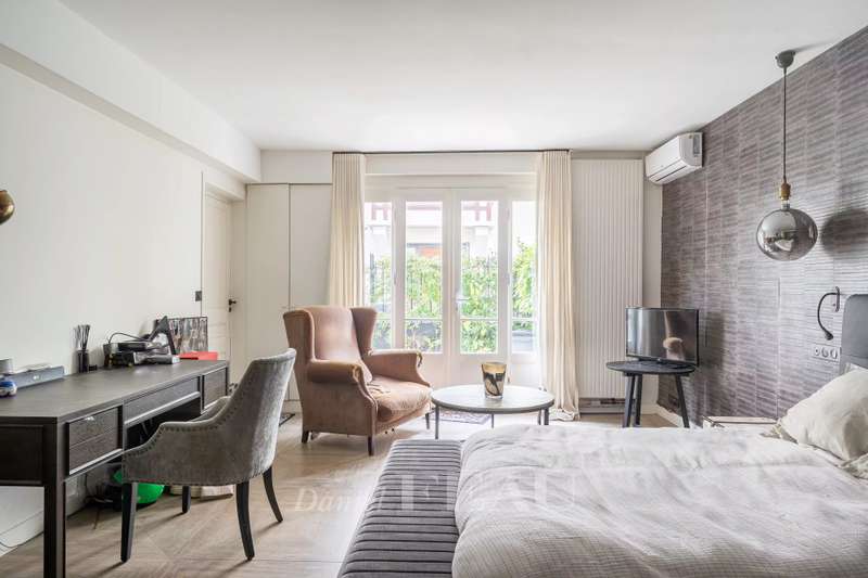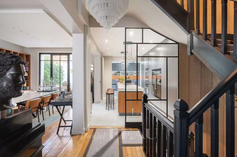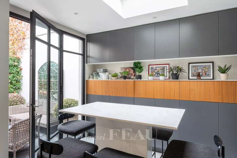 This renovated property is located in a peaceful private street 10 minutes from Pont de Neuilly metro station on the north-western edge of the capital. The ground floor includes a bedroom with a bathroom and a wc, a relaxation room with a sauna and a shower room, a utility room, technical premises and a guest wc. A dual-aspect double living/reception room with a study area, and a kitchen with dining facilities opening onto a near 20 sqm terrace are on the 1st floor. The second floor comprises two bedrooms sharing a dressing room and each with a bathroom, and a separate wc. A master suite with a bathroom, a dressing room and a wc is on the top floor. It would be possible to install a lift. With a parking space in front of the property. Pasteur catchment area.