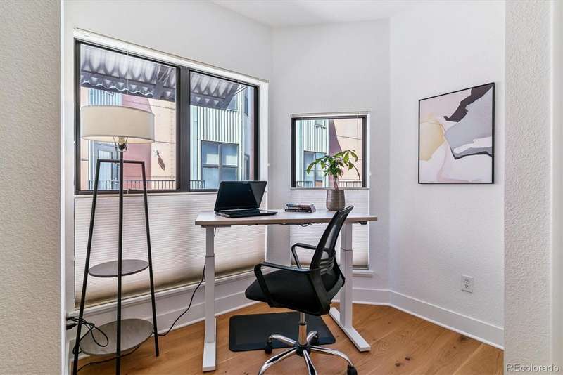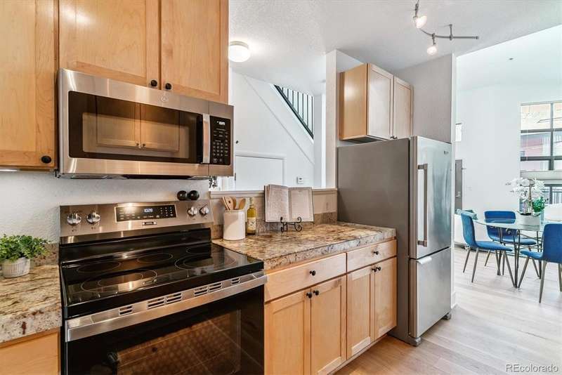 *MOVE IN READY* Urban Vibes, Industrial Cool Fire Clay Lofts Townhouse in the Heart of RiNo. Tucked away and above the buzz of Denvers trendiest neighborhood, this Fire Clay Loft townhouse style; blends industrial edge with modern comfort. Step into an airy, light-filled escape featuring vaulted ceilings, oversized windows, & a dramatic skylight that pours sunshine into your everyday life. The open-concept layout is perfect for entertaining, working from home, or unwinding with a drink on your private patio. Stylish industrial finishes include exposed ductwork, metal railings, open layout and gallery-height walls ready for your art collection. Fresh paint, new engineered hardwood floors and baseboards. The updated kitchen with solid maple cabinetry, granite counters, and stainless steel appliances; newer stove, microwave, dishwasher and garbage disposal. The main level offers a versatile open guest bedroom or home office. The adjacent bath located away from the main living and dining areas. Smart extras like under-stair storage, stacked washer/dryer in convenient laundry closet, water filtration system, and a brand-new water heater. Upstairs your private loft-style primary suite spans the entire second floor with vaulted ceilings, ceiling fan, a bay window plus extra lounge-nook, and a spacious ensuite bath. This home also comes with covered, secure, deeded parkingright beneath the building for maximum convenience. Live in the Heart of RiNo Fire Clay Lofts is a vibrant, mixed-use community surrounded by open courtyards and walkways. Just steps from the citys hottest restaurants, galleries, breweries, and live music. Hang out at Improper City across the streeta dog-friendly neighborhood hub with food trucks, games, and an outdoor bar scene. Quick access to light rail, the A-Line to DIA, and major highways (I-25 & I-70) makes commuting a breeze. Bold style. Prime location. Laid-back living. Welcome to your next RiNo hideaway. Staging has been removed