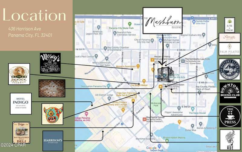 Introducing The Mashburn Building, an iconic structure featuring four stories and 27,000 square feet of historical charm, offering 18 industrial-style residential lofts. Located in the vibrant heart of Historic Downtown Panama City, this distinctive development features a dynamic fusion of commercial and residential spaces spread across multiple levels. Providing versatile layouts tailored to diverse preferences, encompassing co-working spaces, a restaurant, an inviting members-only lounge, and the potential addition of a rooftop lounge. Experience elevated living on floors three and four. Presenting Loft 11, boasting two bedrooms and 1,100 square feet of space, offering breathtaking vistas of St. Andrews Bay and Downtown Panama City. Enjoy panoramic views facing North, South, and West, including a picturesque overlook of Harrison Avenue. This loft seamlessly combines classic allure with modern sophistication, featuring industrial-inspired design elements such as concrete floors complemented by nearly 12-foot-tall ceilings. The kitchen will showcase sleek stainless steel appliances and elegant quartz countertops, adding to the allure of these exceptional spaces. Step right onto Harrison Ave and immerse yourself in the vibrant atmosphere of Downtown Panama City. Explore a plethora of dining options, breweries, coffee shops, boutique shopping, art and photo galleries, pilates and boxing club, a marina, and much more just moments away. The first purchaser to secure a loft under contract will receive a complimentary one-year ''1909 Membership'' at History Class. Additionally, the initial five buyers who sign and place their deposit will enjoy a year of complimentary leasing for a private parking spot. An enticing opportunity awaits investors seeking a second home, vacation retreat, or income-generating property at an attractive price point. Presently, the renderings are in the conceptual stage, characterized by artistic interpretation. More precise renderings will be developed as construction progresses. Construction to be completed by end of 2025.