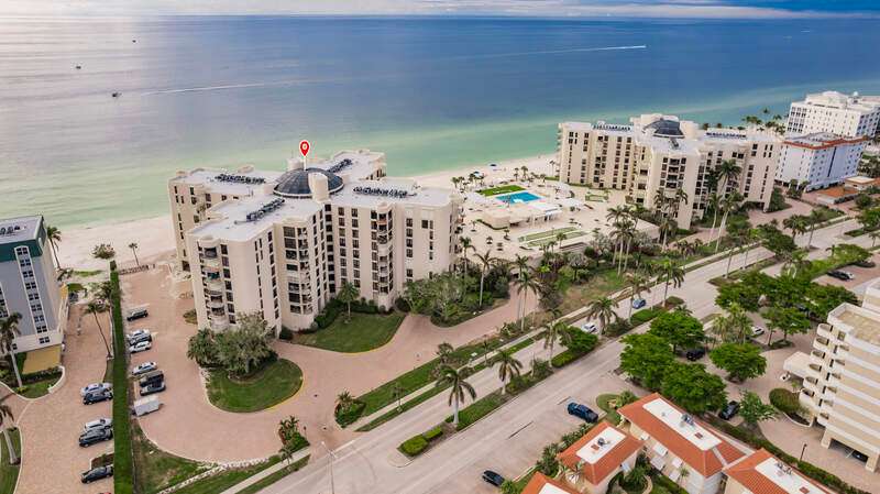 RARE BUYING OPPORTUNITY! STUNNING TOP FLOOR CONDO FACING WEST TO THE GULF OF MEXICO, WITH LONG AND UNOBSTRUCTED BEACH + GULF VIEWS! BRAND NEW AC UNIT INSTALLED IN MARCH 2025! Welcome to this bright and spacious 2 bedroom / 2.5 bathroom luxury residence in the south building of the highly sought-after Lausanne condominium, located right at the Moorings beach in sunny Naples, FL. This amazing unit boasts a well laid out floor plan with plenty of natural light throughout. Experience the epitome of coastal living on the large, covered balcony, where you can savor morning coffee or evening cocktails while being mesmerized by the Gulf of Mexico. Two prime garage parking spaces, right at the lobby entrance, are also included with this condo. Lausanne Condominium offers an array of amenities, including a large resort-style, elevated beachfront pool deck w/heated pool, bocce court, BBQ area, fitness center w/beach + gulf view, large social room w/caterer's kitchen, billiard room and library, ensuring that every day feels like a vacation. 24-hour lobby security and on-site management. Perfectly located in the Moorings neighborhood of Naples, very central and just minutes from downtown shopping, dining + entertainment and from Mercato. Walking distance to The Village Shops at Venetian Bay and its waterfront restaurants with beautiful bay views! Whether you're strolling along the white sandy beach, indulging in water sports, or seeking to enjoy the award-winning local restaurant scene, this condo provides the perfect base for an unparalleled coastal lifestyle. Seize the opportunity to own a slice of paradise at the top of Lausanne! All furniture could stay for the buyer, making this condo ready to move in or to generate rental income immediately.