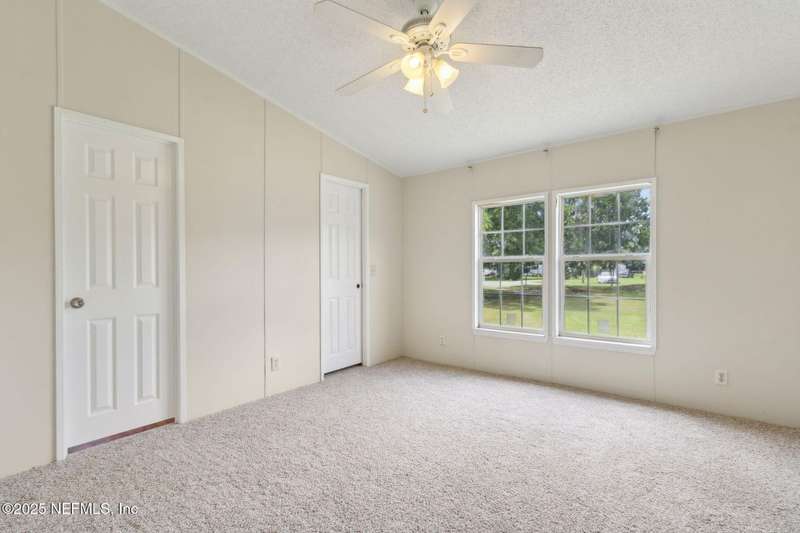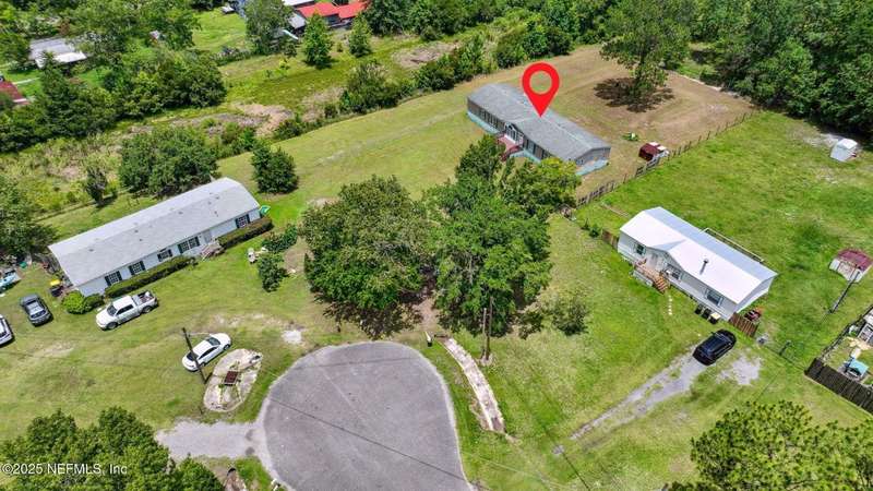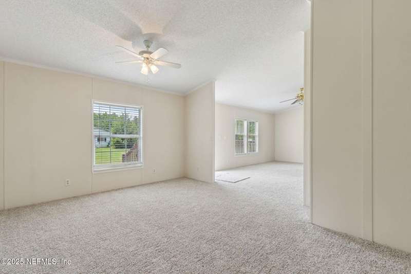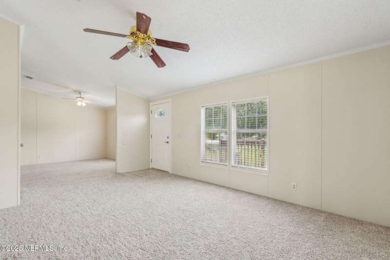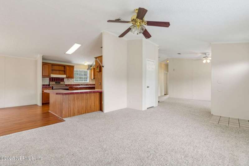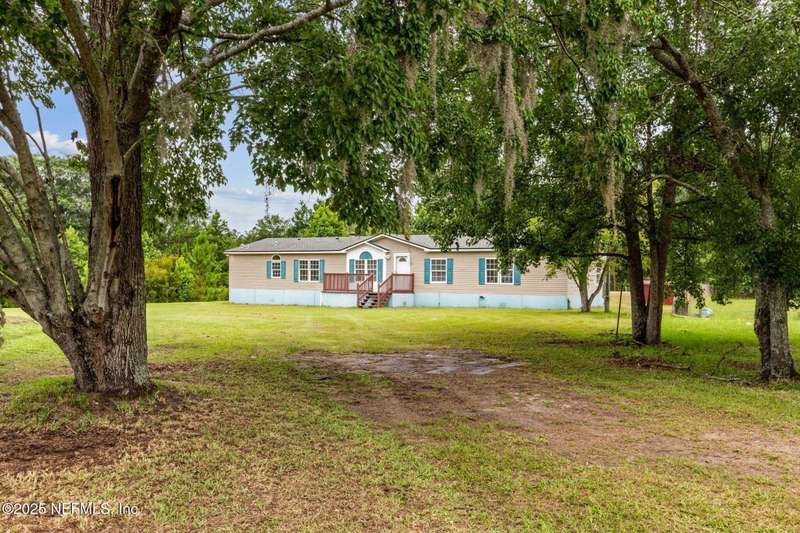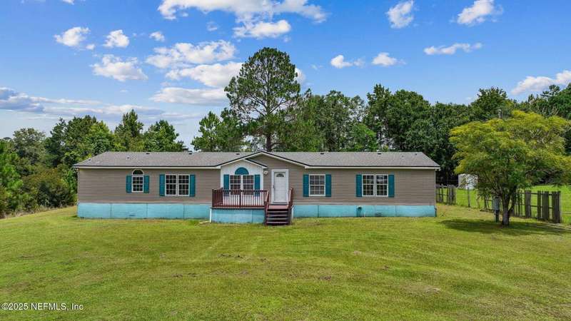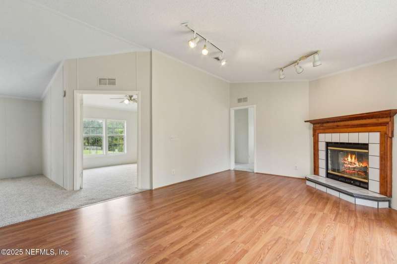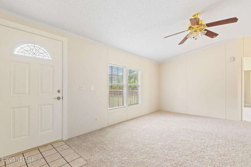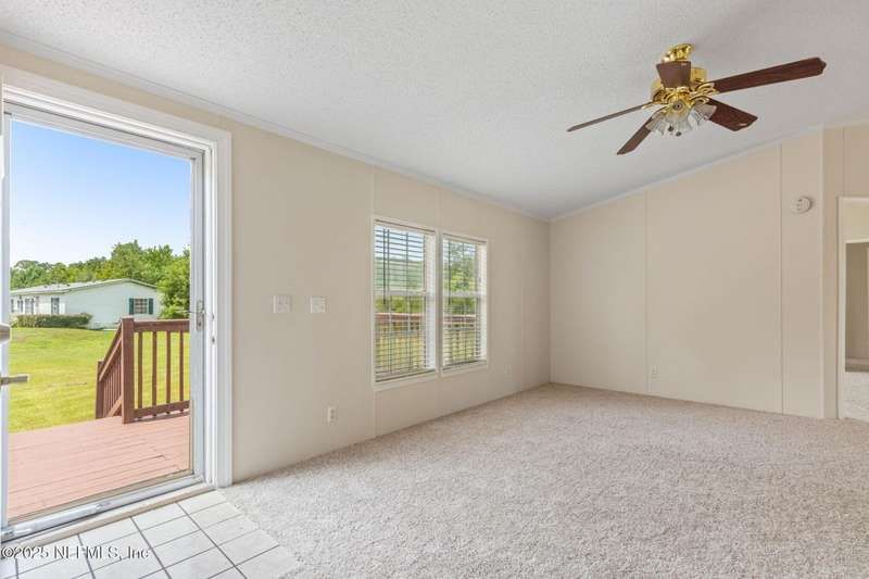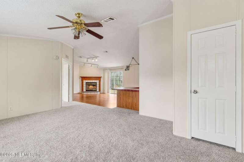 Spacious, move-in ready doublewide mobile home nestled on a 1 acre lot (approx .60 cleared & usable) at the end of a quiet, paved cul-de-sac. This peaceful setting offers both privacy and convenience just minutes from town amenities, shopping and commutes. Enjoy vaulted ceilings and an abundance natural light, creating a bright and airy atmosphere. Fresh interior paint and brand new carpet make this home truly move-in ready. The well designed layout includes wood laminate flooring in the separate living room, dining room, and family room with glass door leading to new exterior stairs. The family room also has a cozy, tiled fireplace w/wood mantle. A spacious kitchen is complete with island, breakfast bar, walk-in pantry, ample cabinetry, & appliances. Split BR layout, large primary suite with ensuite bath. Walk-in closets in all bedrooms, lots of ceiling fans. Brand new septic tank and roof is less than 5 years old. This home offers value & space inside and out! Come home!