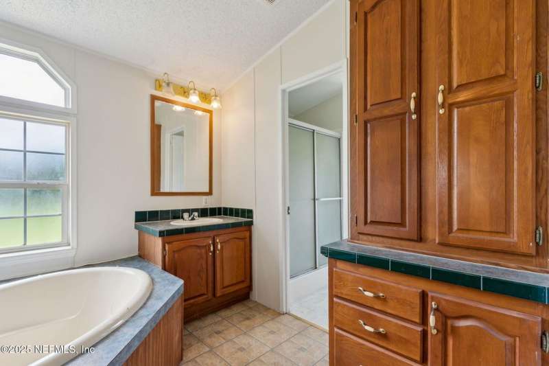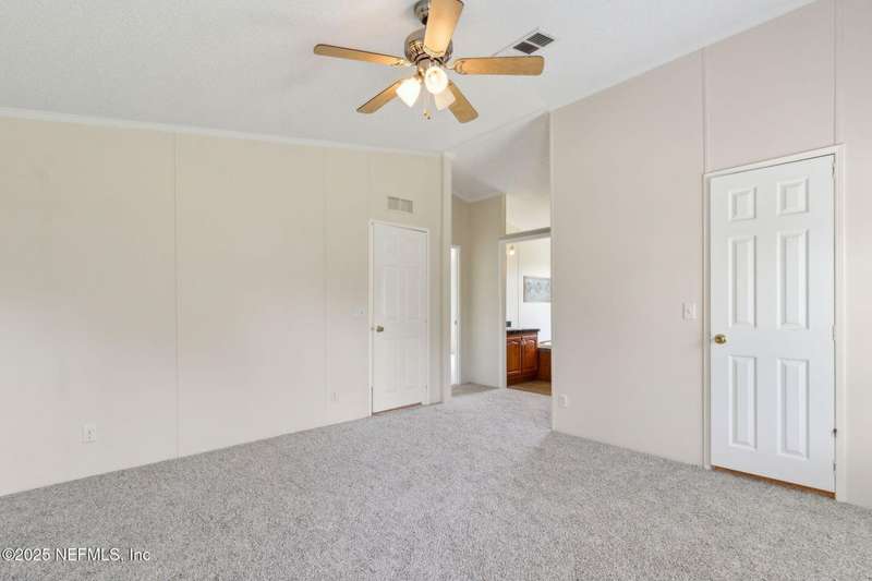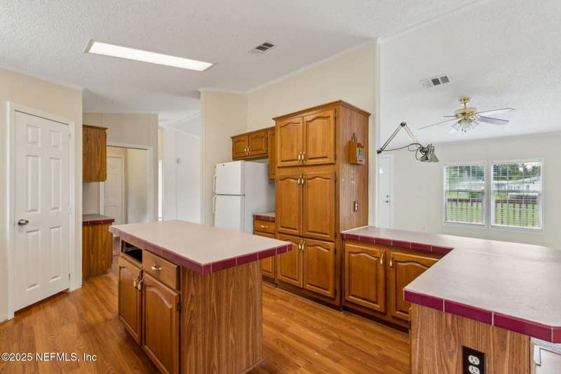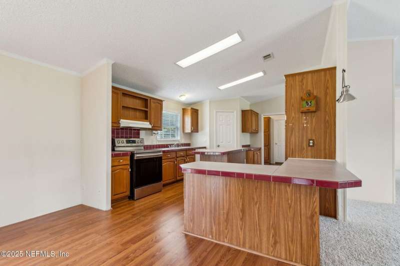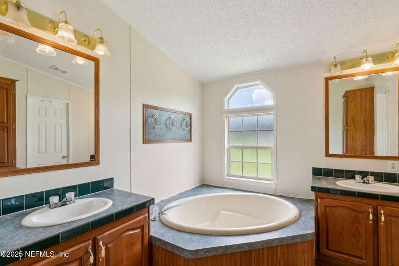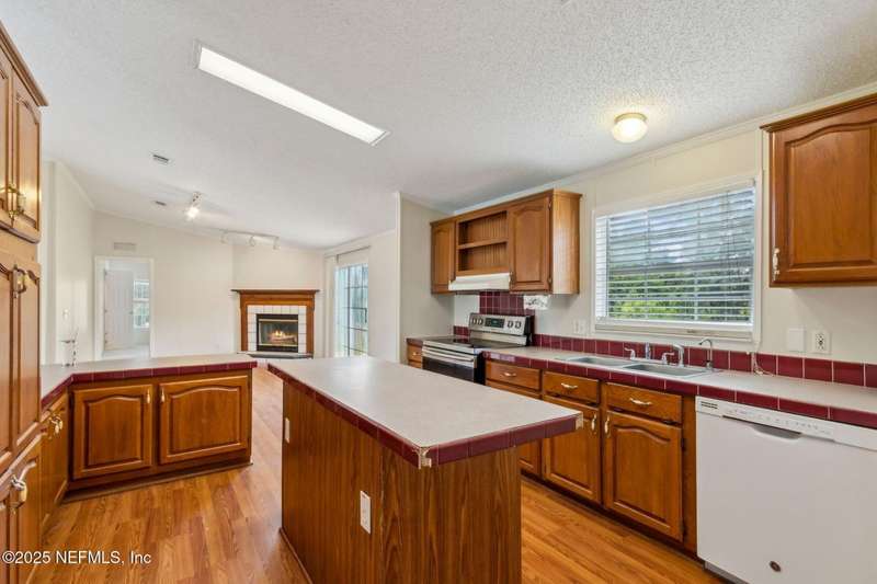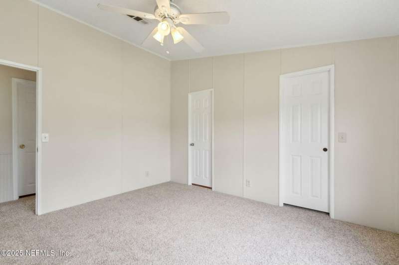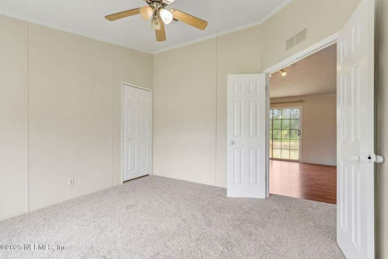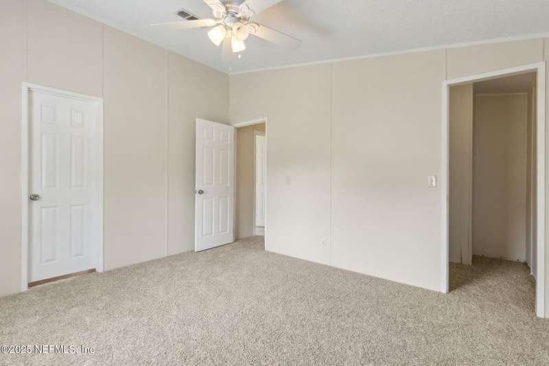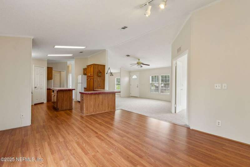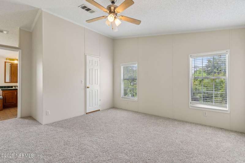 Spacious, move-in ready doublewide mobile home nestled on a 1 acre lot (approx .60 cleared & usable) at the end of a quiet, paved cul-de-sac. This peaceful setting offers both privacy and convenience just minutes from town amenities, shopping and commutes. Enjoy vaulted ceilings and an abundance natural light, creating a bright and airy atmosphere. Fresh interior paint and brand new carpet make this home truly move-in ready. The well designed layout includes wood laminate flooring in the separate living room, dining room, and family room with glass door leading to new exterior stairs. The family room also has a cozy, tiled fireplace w/wood mantle. A spacious kitchen is complete with island, breakfast bar, walk-in pantry, ample cabinetry, & appliances. Split BR layout, large primary suite with ensuite bath. Walk-in closets in all bedrooms, lots of ceiling fans. Brand new septic tank and roof is less than 5 years old. This home offers value & space inside and out! Come home!