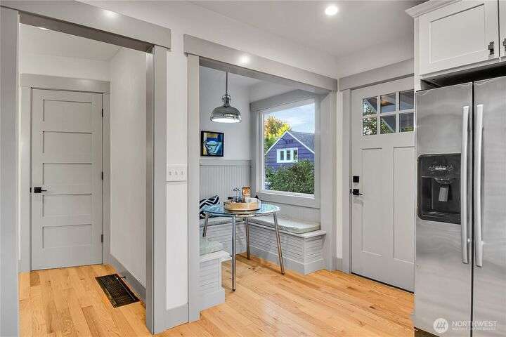 Timeless 1916 Craftsman charm meets modern comfort in this beautifully updated home. Thoughtful renovations include new windows, upgraded plumbing, electrical, heat pump, and dry basement systems for peace of mind. The 2020 kitchen and bath remodels blend classic style with fresh finishes, while the basement redo added a bedroom, den and a sleek new ¾ bathroom. A main floor bedroom & full bath offers flexibility for single-level living. Upstairs, find 2 beds and a spacious primary suite. Outside is a generous corner lot with abundant garden spaces, plus two off-street parking spots paired with a new EV charger. A smart layout, period details, and turnkey updates make this a great opportunity to own a piece of history with modern touches.