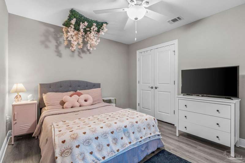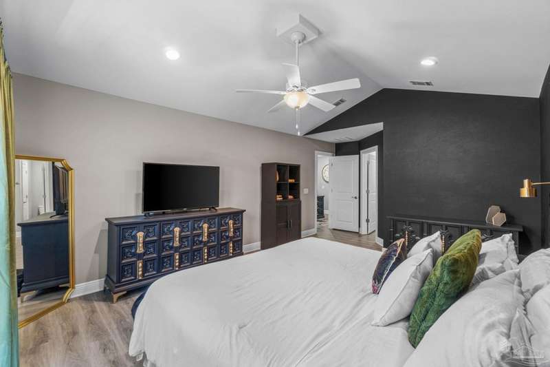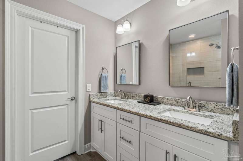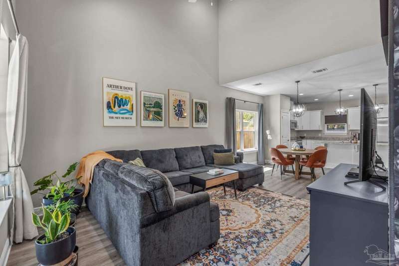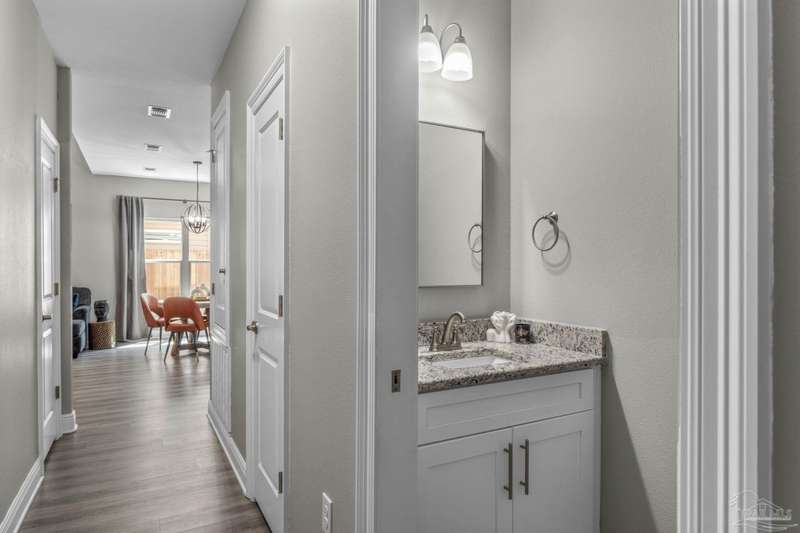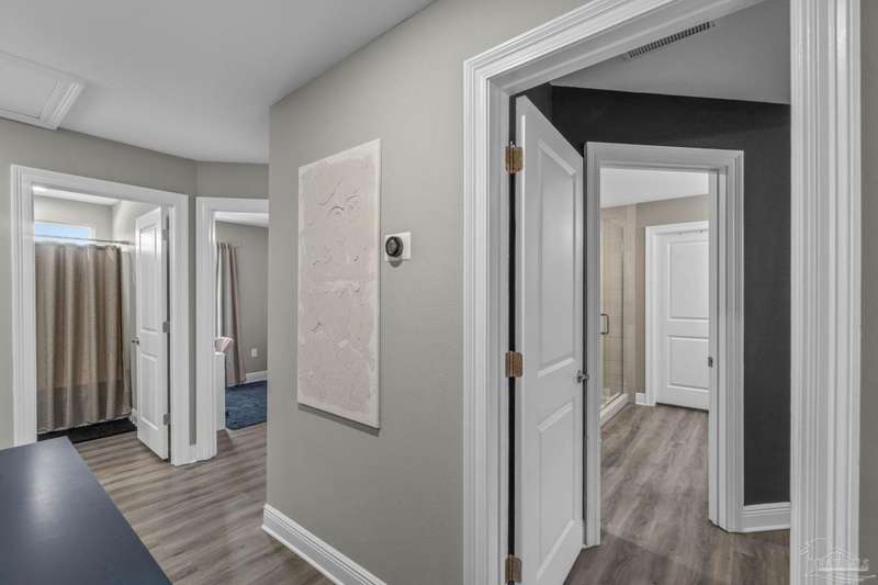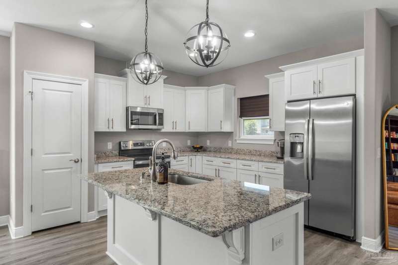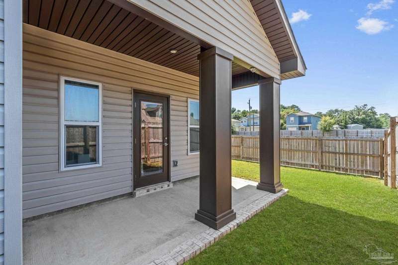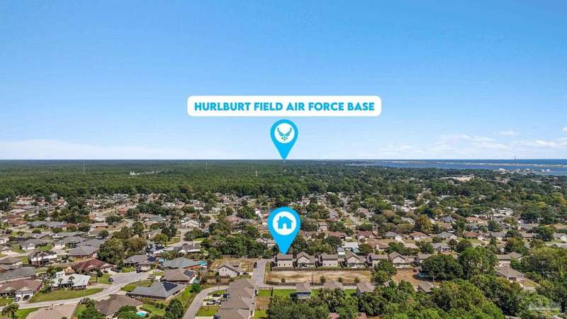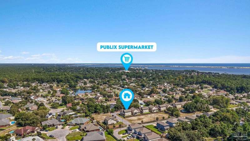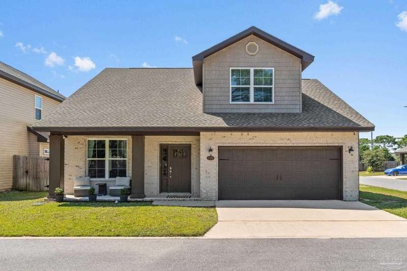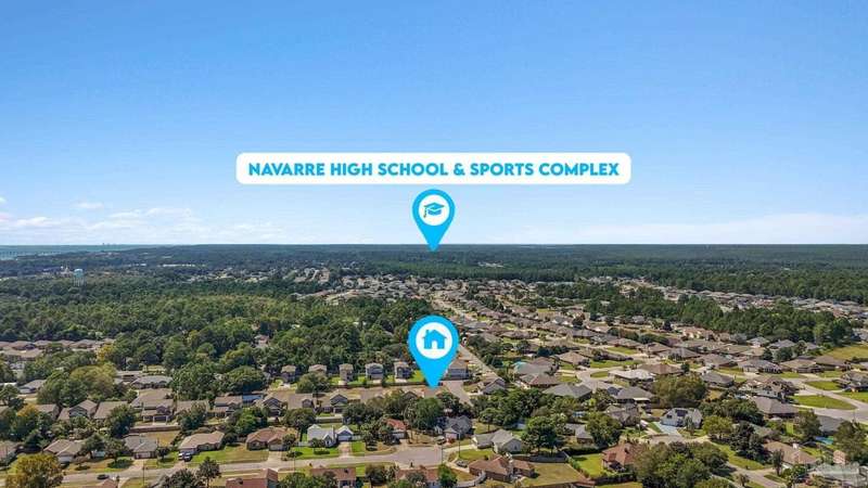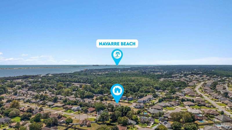 Like-New Corner-Lot Home in East Navarre Only 3 years young, this Robbins-built home feels brand new-complete with all the finishing touches already in place. Perfectly positioned on a corner lot in desirable East Navarre, it offers quick access to Navarre Beach, local shopping and dining, and Hwy 98 for an easy commute to Hurlburt Field AFB. Step onto the welcoming covered front porch and into a bright foyer with soaring ceilings that flow seamlessly through the open-concept layout. The spacious great room is filled with natural light, while a second family room at the back of the home provides a cozy retreat with floor-to-ceiling built-in bookcases, ample storage, and glass door leading to a covered back patio and fully fenced yard-ideal for entertaining or unwinding on those warm Florida evenings. The gourmet kitchen showcases all-wood white shaker cabinets with crown molding, gleaming granite countertops, stainless steel appliances, a center island, breakfast bar, and a dedicated dining area perfect for busy mornings or casual gatherings. The generous primary suite features a spa-inspired bath with an oversized tiled walk-in shower and seamless glass door, dual granite vanities with rectangular under mount sinks, sleek mirrors, and a spacious walk-in closet. Additional bedrooms are well-sized with ceiling fans and double-door closets, while the second full bath includes a granite vanity and tub/shower combo. Two extra hallway closets provide added storage. Conveniently positioned off the garage entry, a practical corridor houses a half bath, spacious laundry room, and under-stair closet keeping daily essentials organized and easily accessible. Luxury vinyl plank flooring flows throughout, while hurricane window protection and a dimensional shingle roof help reduce insurance premiums. Move-in ready and close to everything East Navarre has to offer schedule your private tour today!