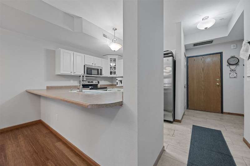Welcome to this main floor 2 bedroom, 1 bathroom condo. The unit boasts an open floor plan, bamboo flooring in living/dining rooms, gas fireplace, large covered deck. The building offers an elevator to the underground parking, with no stairs needed for easy access. Close to trails and Iowa City parks.Buyer to verify ICCSD schools.
