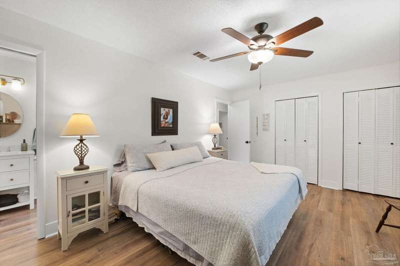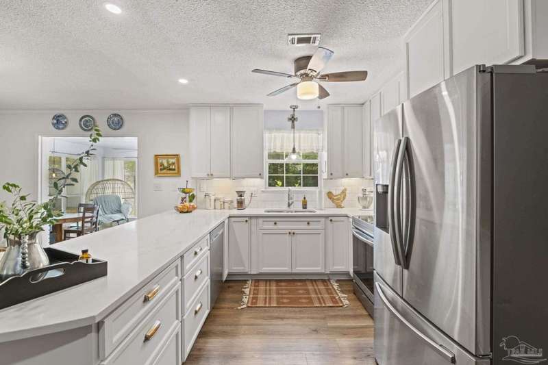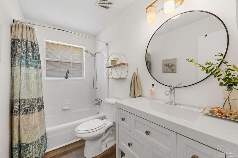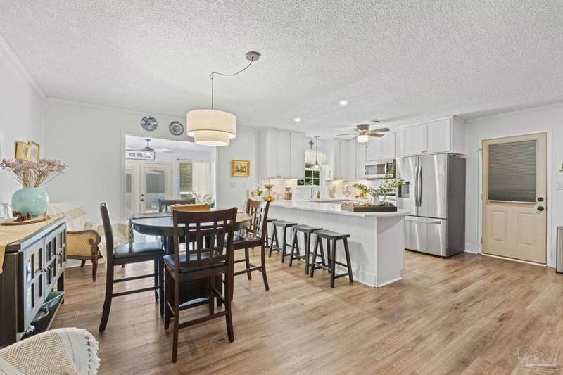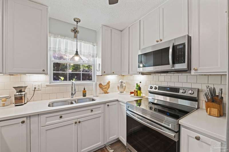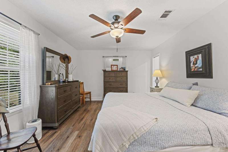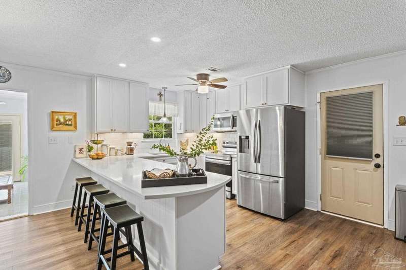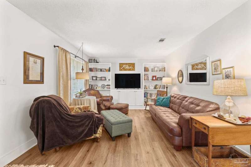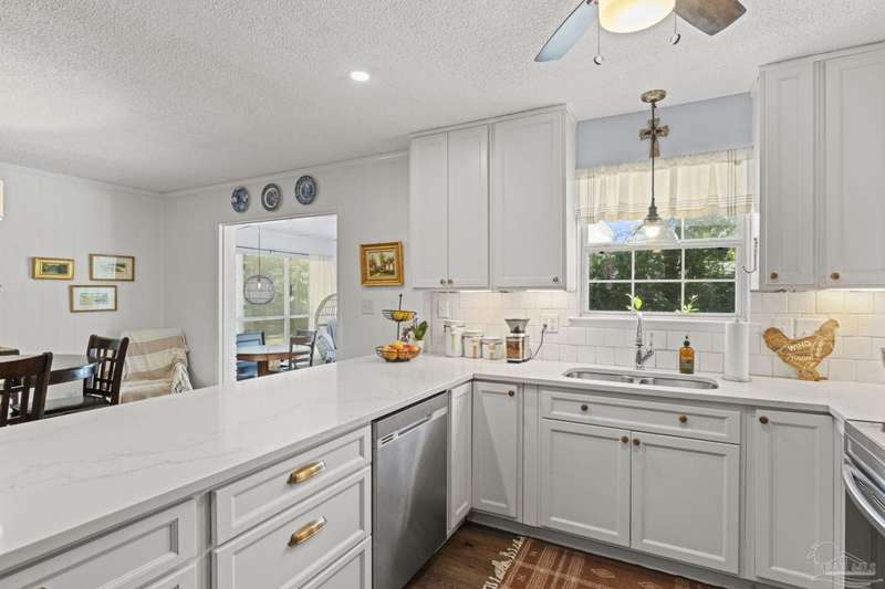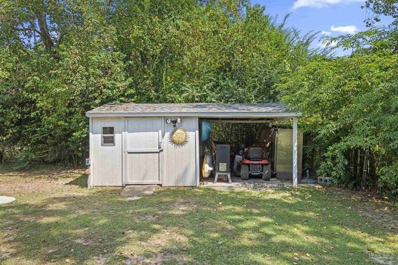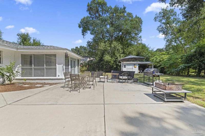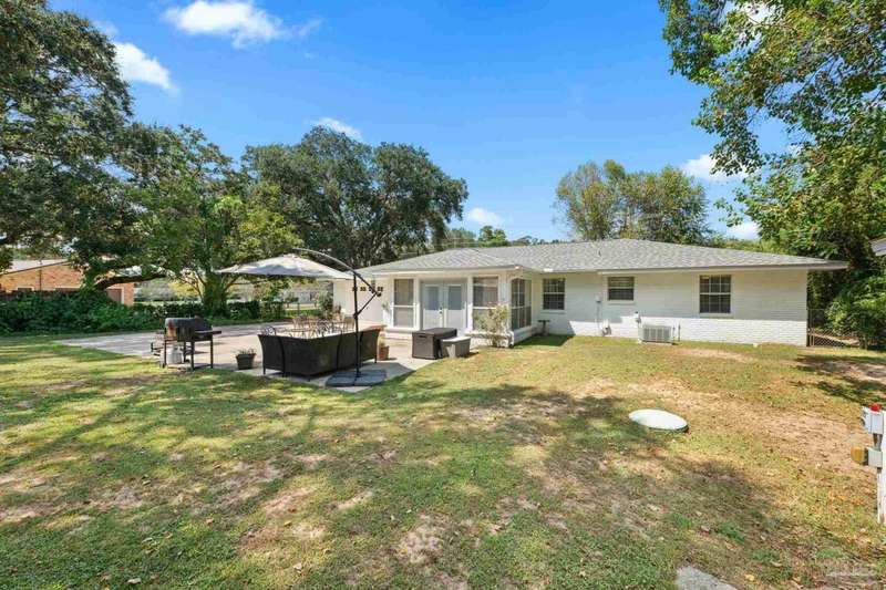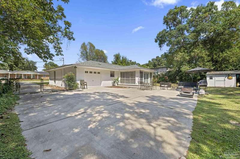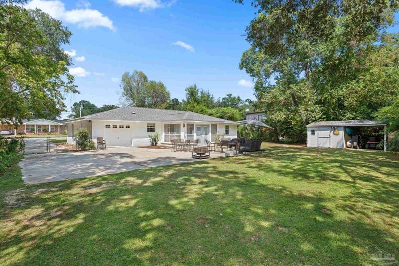 Welcome home! This brick, ranch-style home is a true classic with an open concept living area, 3 beds, 2 baths, and a sunroom. Located in NW Pensacola, only 5 minutes from I-10, shopping, dining, theaters, schools, and the airport are only minutes away! The interior of the home has two dining areas, and a living room with built-in book cases. The stunning kitchen features high-end finishes including stainless-steel appliances and quartz countertops, this kitchen will be a joy to entertain in. Throughout the home you will notice fresh paint, tastefully selected light fixtures, and new LVP floors continuing from main rooms to the bathrooms, making easy cleaning. The master suite has two closets and a remodeled bathroom with a lovely walk-in, tile shower. Outdoor living provides many amenities including a large, third of an acre with fenced in backyard, tool shed with electricity, oversized patio, rear-loading, single car garage and enough driveway space to park an RV. (All concrete poured in ?22.) Many extensive updates have recently been made to ensure your enjoyment for years to come, including a roof (?22), HVAC (brand new), and rewire. Only 30 minutes from Pensacola Beach and Perdido Key Beach, the white sands and sparkling waters of the Gulf Coast are near this quintessential FL home. Book your showing today!