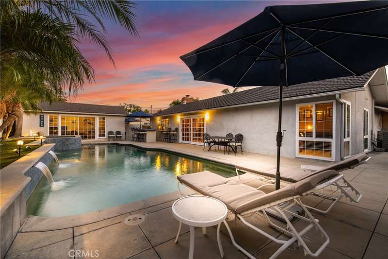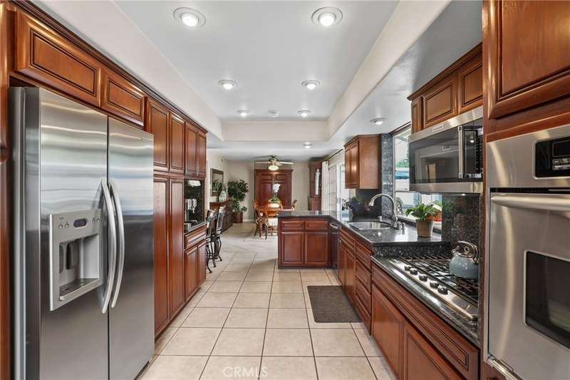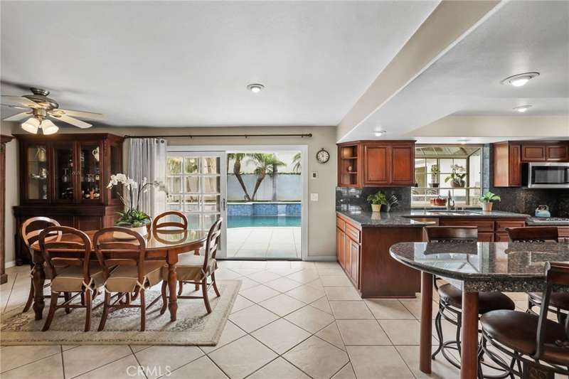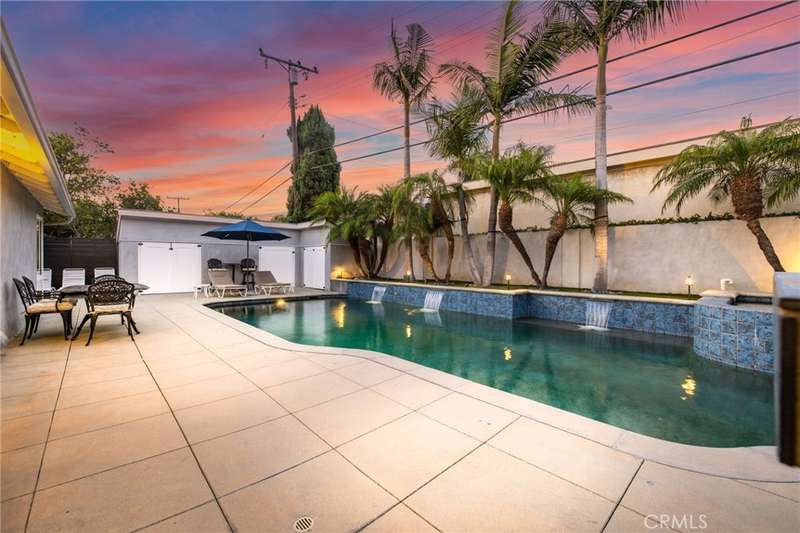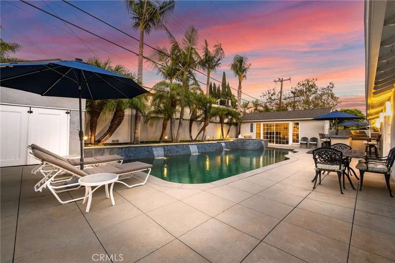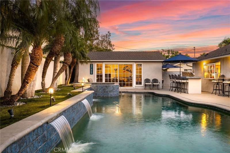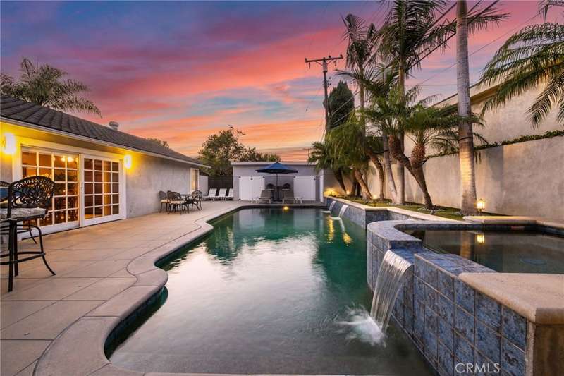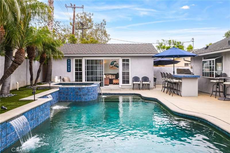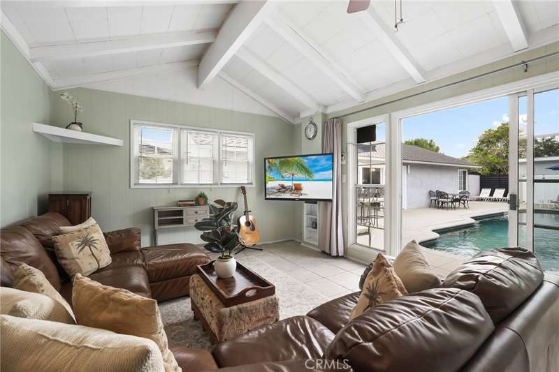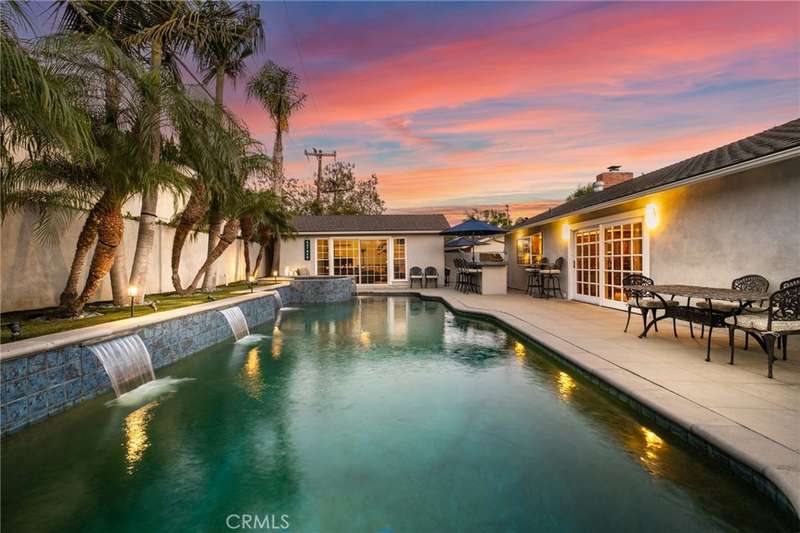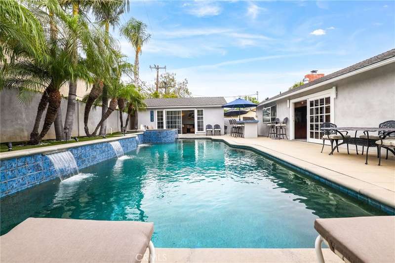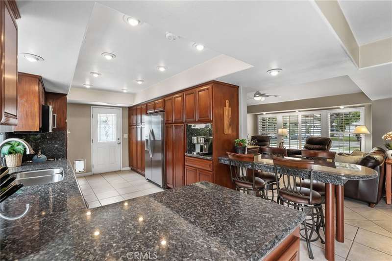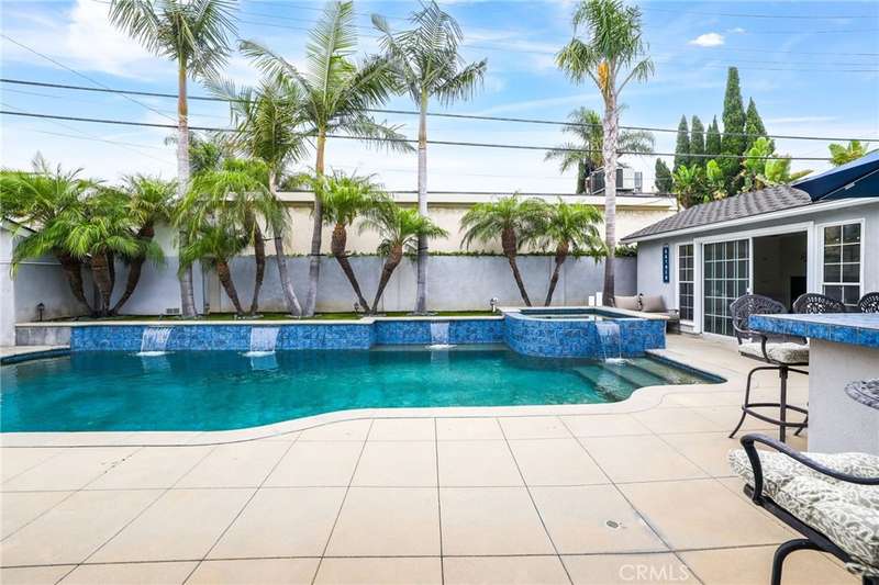 Welcome to 12852 Foster Road, nestled in the highly sought-after community of Rossmoor, Orange County--where pride of ownership meets exceptional comfort and design. This beautifully upgraded single-story home offers approximately 2,000 square feet of total living space, including a 1,645 sqft main home and a 355 sqft detached pool casita. Situated on an 8,064 sqft lot, it features full RV hookups, a 45-foot gated RV parking space, and a sweeping driveway leading to a finished two-car garage with direct access--altogether a rare find in Rossmoor. Inside, high vaulted ceilings, recessed lighting, and designer tile flooring flow seamlessly throughout. The living room centers around a granite gas-and-wood-burning fireplace with mantle, surround sound, and dual-pane windows, creating a warm and inviting gathering space. The chef's kitchen has been completely remodeled with solid wood cabinetry (with custom pullouts), granite countertops, stainless steel KitchenAid appliances, and a sunlit garden window. The adjacent formal dining area opens through a custom beveled-glass sliding door to the private backyard oasis. The primary suite offers a walk-in closet and a luxurious en-suite bath featuring granite counters, a marble shower, and elegant designer finishes. Secondary bedrooms include mirrored closets and ceiling fans. The detached casita provides flexibility as a home office, guest suite, or fourth bedroom, complete with built-in cabinetry and a view of the resort-style backyard. Step outside to enjoy your own private retreat, showcasing a Pebble-Tec pool and spa, built-in BBQ with seating area, outdoor bathroom, mature palms, custom lighting, and abundant storage. Additional upgrades include a newer roof, tankless water heater, re-lined sewer line, and updated HVAC for year-round comfort for both main house and annex. The finished two-car garage offers extensive cabinetry, a stainless utility sink, and washer/dryer hookups. Ideally located near award-winning Los Alamitos schools, beautiful parks, and convenient shopping, this home perfectly blends functionality, sophistication, and the best of Southern California indoor-outdoor living.