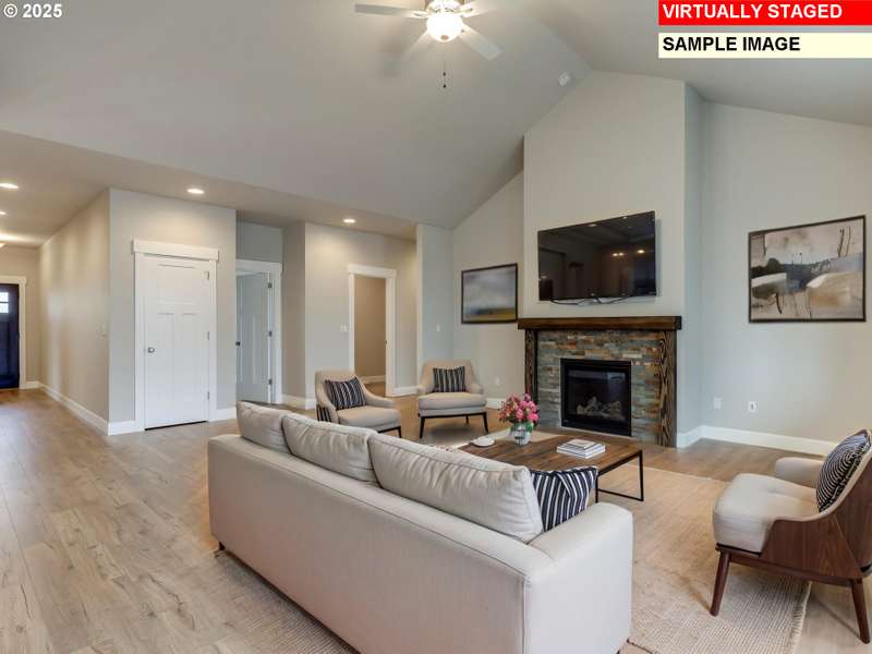 The Cascadia plan offers 2,025 square feet of comfortable living space, all on one level. The spacious vaulted great room seamlessly flows into the dining area and gourmet kitchen, all featuring sleek laminate flooring. The kitchen boasts stunning slab countertops, stainless steel appliances, and a large island, perfect for meal prep and entertaining. The vaulted primary suite is a retreat, complete with a generous walk-in closet, double sinks, and a luxurious shower. With 4 well-appointed bedrooms, this home is sure to meet all your needs. Step outside and relax on the covered patio in your fenced backyard. Come visit and see for yourself. Visit the open house host at 2207 E Badger Way to start your tour Saturdays and Sundays 1 to 4! Please note, attached photos are for example purposes only.