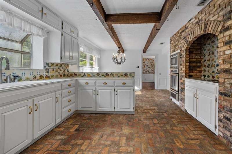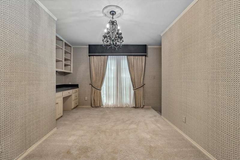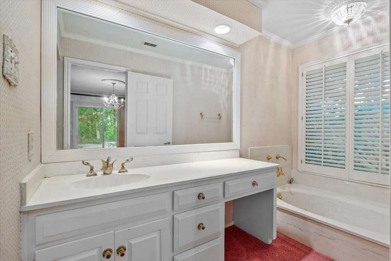 Lovely custom-built, one-owner home on a corner lot of a fabulous cul-de-sac close to Rangers Golf Course. A private driveway and oversized circular drive leads you to the lush landscaping that includes some of the most beautiful grounds in the neighborhood. All bedrooms include en-suite baths. The primary bedroom is 20' x 23' with a nice sitting area adjacent to a cozy fireplace. Transitioning to the en-suite bath, there are two spacious walk-in closets. The bath features a jetted tub and a large vanity with separate sinks leading to a walk-in shower and private bath area with a bidet. A quiet study is located next to the primary bedroom. There are two large living rooms, one boasting a formal setting with its own fireplace and a second living area with a large rock fireplace and exposed beams across the ceiling. Adjacent to the kitchen is a large dining room and breakfast area open to the kitchen. The kitchen includes beautiful brick paver flooring and updated appliances. Off the kitchen is a full bath and inviting sun room for you to curl up with a good book. Off the sunroom is a covered back porch, perfect for relaxing after a long day while overlooking the backyard. The expansive backyard has concrete walking paths to lead you through the extensive landscaping beds. This is a wonderful opportunity to purchase a beautiful home and add your touches to it!