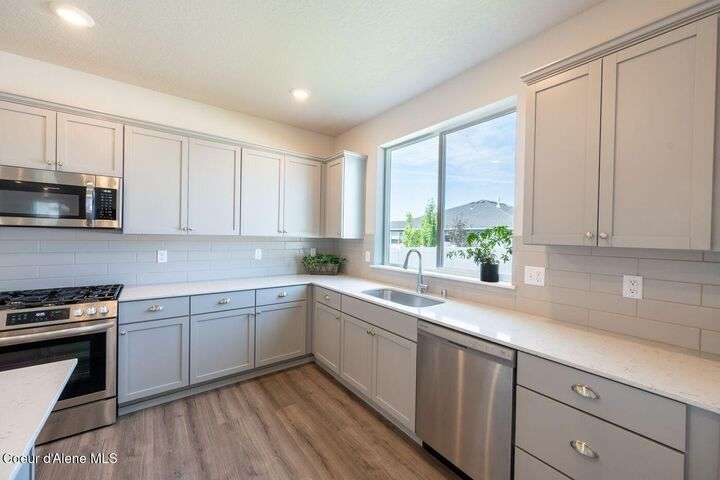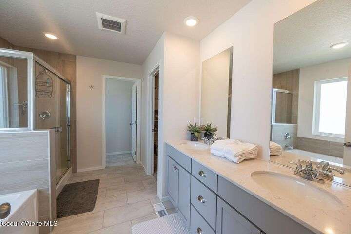 Better than brand new! Lived in less than a year! Former model home and it shows with thoughtful details throughout. 4 bed/2.5 bath WITH ADDITIONAL: Office and upstairs family or play room. Lots of extras including--designer painting, contemporary colors, central air, plant bed curbing, wide 3 car driveway, fully sheet rocked garage, large 1/5 acre lot, all window coverings, gas fireplace, front/back sprinklers with vinyl fenced backyard. Master bedroom is generous/ master bath has soaker tub and tiled walk in shower with a HUGE walk in closet! Better than new construction and no wait!