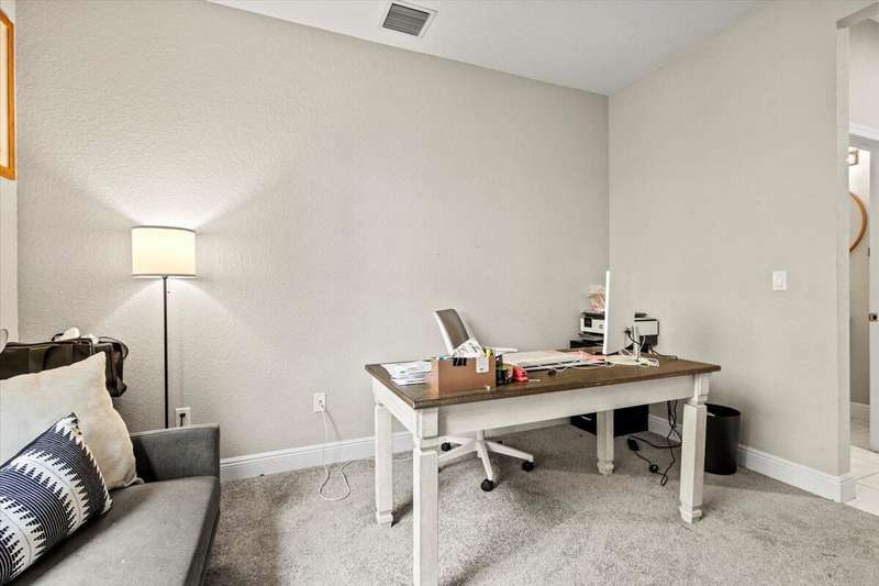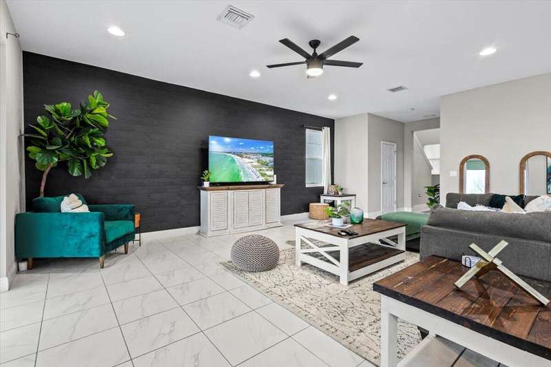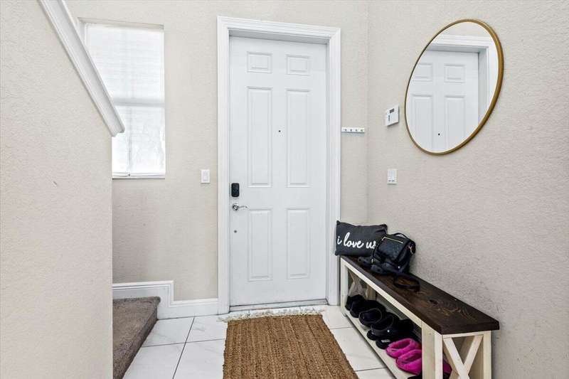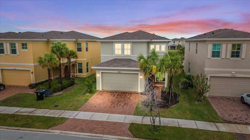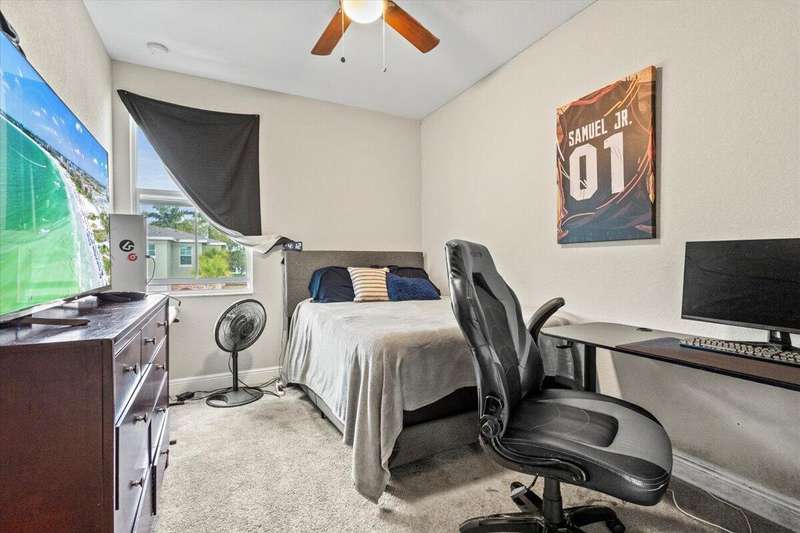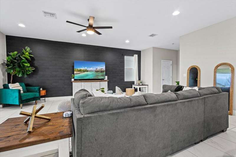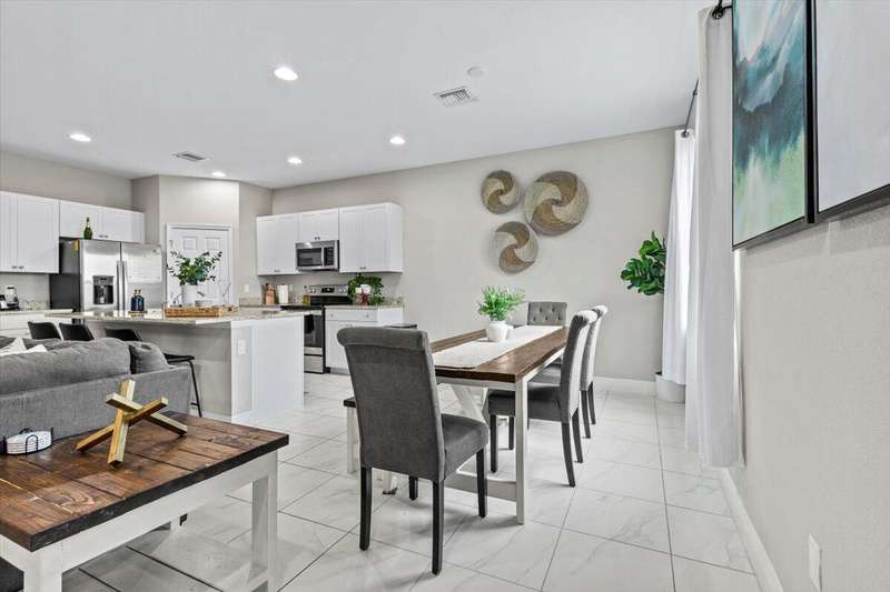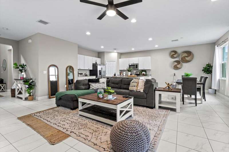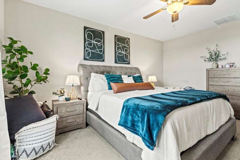 . The open-concept living area is highlighted by high ceilings and large windows, while the kitchen offers stainless steel appliances, granite countertops, and a sizable island. The master suite boasts a luxurious en-suite bathroom with a walk-in shower. The beautifully landscaped yard and covered patio, which offers a serene lake view, creating an ideal setting for outdoor living. The community also provides amenities such as a clubhouse, pool, fitness center, and walking trails.