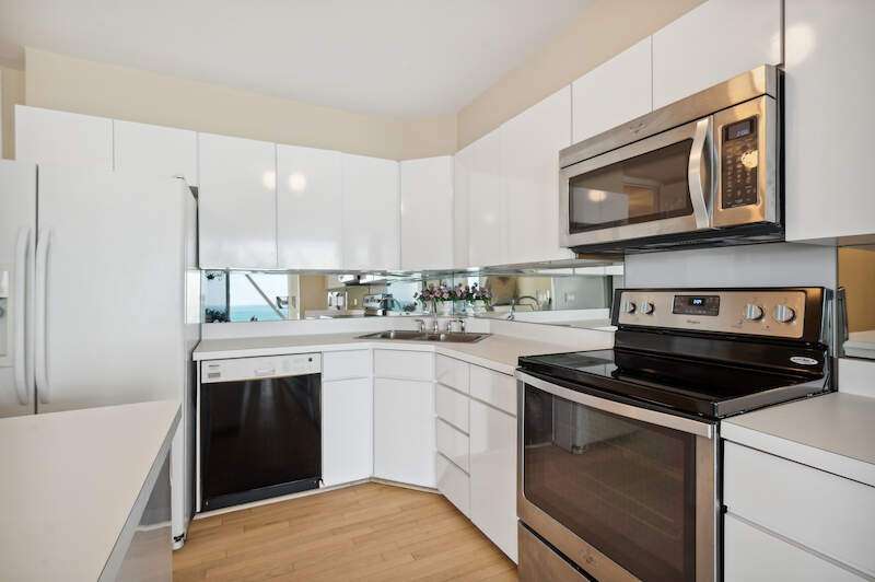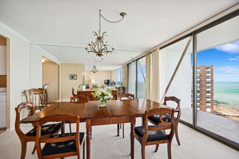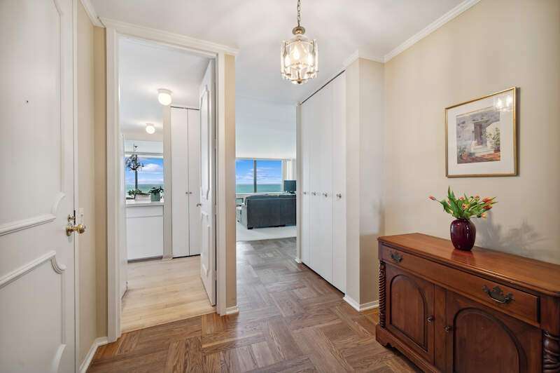 Just Renovated, TURNKEY Lakefront Living! Experience luxury at its finest in this stunningly reimagined home, fully gut-renovated with designer details and high-end finishes throughout. From the moment you enter, the open floor plan and breathtaking lake views will impress. The show-stopping kitchen boasts custom cabinetry, quartz countertops, premium appliances, and dual islands-one with a butcher block prep station and another with seating for casual dining. The spacious living room features a newly built-in Napoleon fireplace, while the separate dining area is enhanced by chic new lighting and sconces. Versatile floorplan with the 3rd bedroom on the main living level with french doors - can be used as a bedroom, office or a den! Powder room with limestone vanity on this floor as well. Step outside to the patio to enjoy morning coffee, the sunrises and refreshing lake breezes. The serene primary suite offers an abundance of closet space and a spa-caliber bath with a custom double vanity in white oak, designer tile, and a rare window for natural light. The second bedroom includes its own newly renovated ensuite bath. In-unit laundry room provides added convenience. One *interior parking space. This full amenity building offers 24/7 Doorman, on-site management, outdoor pool by the lake, exercise room, renovated party room with a kitchen that opens to the pool area, indoor parking. Located across from the newly renovated Plaza Del Lago shopping with high-end boutiques, restaurants, and coffee shops. Langdon Park is just down the block. A carefree beach lifestyle awaits you. NOTHING TO DO HERE BUT MOVE RIGHT INTO THIS GORGEOUS LAKEFRONT HOME! Buyer pays Wilmette transfer tax. Monthly Assessment $1,987.72.