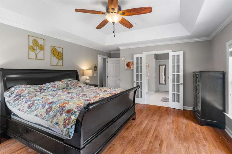 Discover this full-brick gem in the highly sought-after Meadow Lakes II community! Offering 5 bedrooms and 3 full baths, this home is designed for both comfort and versatility, featuring a main-level bedroom and bath that's perfect for overnight guests or multi-generational living. Work from home with ease in the private office, and unwind in the spacious primary suite with tray ceiling, whirlpool tub, separate shower, and a walk-in closet built for organization. The kitchen is equipped with a gas range, pantry, and breakfast area, and flows easily into the formal dining room for gatherings. Step outside to a Trex deck and expansive paver patio overlooking the fenced backyard?ideal for relaxing or entertaining. A side-load 2-car garage, whole-house generator for peace of mind during power outages, tankless water heater, and 0.58-acre lot add convenience and value. Enjoy all the amenities Meadow Lakes II has to offer, including a pool, clubhouse, tennis courts, scenic ponds, and neighborhood social events?all close to schools, shopping, and dining.