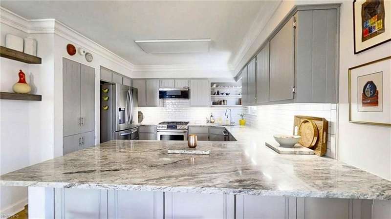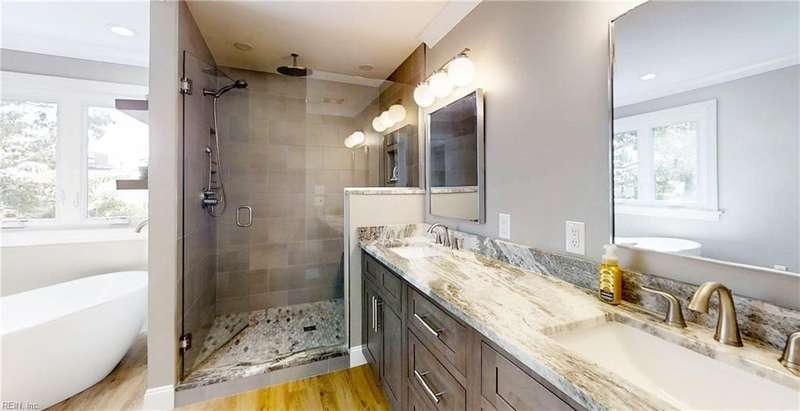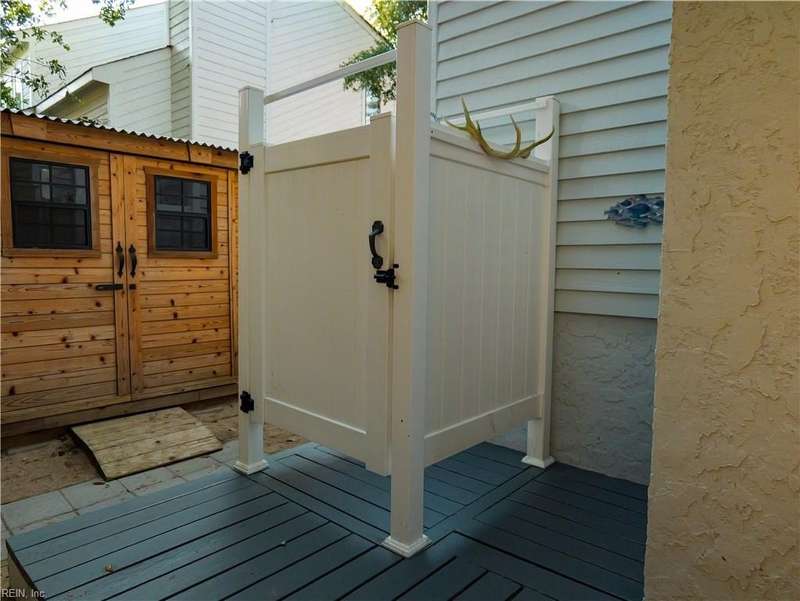 Coastal Paradise in Cape Story by the Sea! Experience bay breezes and breathtaking beach sunsets from this hidden gem in one of the area's most sought-after neighborhoods. Nestled just seconds from the shoreline, scenic state park trails, and vibrant local amenities, this three-level retreat offers the perfect blend of privacy and convenience. This move-in ready home has been meticulously updated with a brand-new HVAC system, durable 40-year architectural shingles, luxury vinyl plank flooring throughout, and gleaming granite countertops. Inside, discover three spacious bedrooms each with a private ensuite bath, an additional half bath on the main level, and two cozy gas fireplaces. The expansive owner's suite features a private deck, custom built-in storage, a generous walk-in closet, and a spa-inspired bathroom. Outdoor highlights include a new workshop, stamped concrete patio and driveway with space for five vehicles, three levels of decks, and a cedar bike shed.