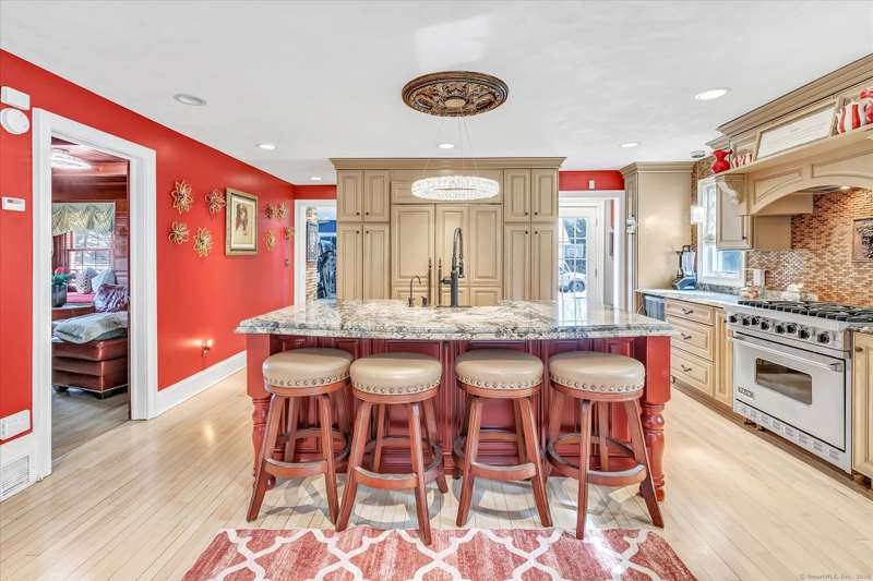 Discover unparalleled luxury in this stunning 4 bedroom, 3.5-bath Colonial in the heart of Orange, where breathtaking classic charm meets modern sophistication. Designed with top-of-the-line finishes and impeccable detail, this home offers the perfect blend of elegance and comfort. The gourmet eat-in kitchen, equipped with Subzero and Viking appliances, flows seamlessly into the attached dining room, ideal for hosting. A spacious living room with a fireplace and a cozy den with an additional fireplace provide inviting gathering spaces. A charming three-season porch extends the living space. Dedicated home office and gym spaces add to the home's versatility. The primary suite is a spa-like retreat featuring a steam shower, soaking tub, and his-and-her walk-in closets. A second suite bedroom offers an attached bath and walk-in closet, while two additional large bedrooms ensure ample space. Hardwood floors run throughout the home. The fully finished basement is designed for entertainment,