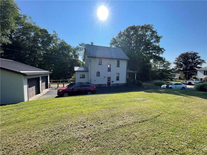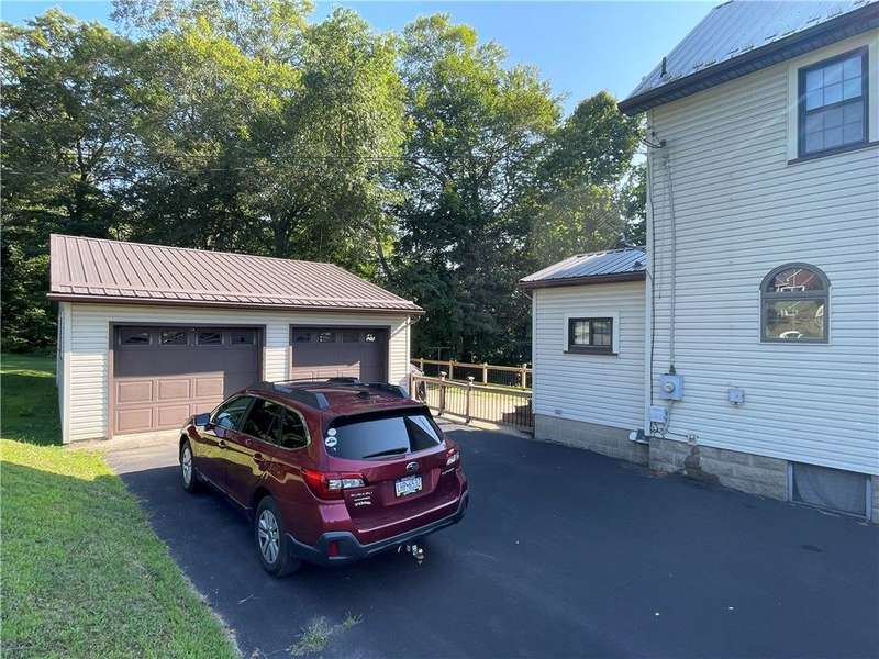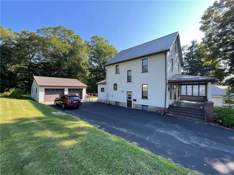 Welcome Home To 19 Hudson! You'll love the charm of the original woodwork, combined with some updates that are a perfect blend of old and new. Spacious rooms, DR has a window seat, Oak kitchen w newer refrig and stove, first floor laundry and half bath for convenience. Large closets in bedrooms, garden tub and walk in shower in main bath. Metal roof, some newer windows, Back yard is partially fenced, perfect for animals. 2+detached garage has space for a work bench. Covered front porch to relax and unwind, peace and quiet of dead end street, extra storage shed and woods and stream behind. This home is kept with pride!