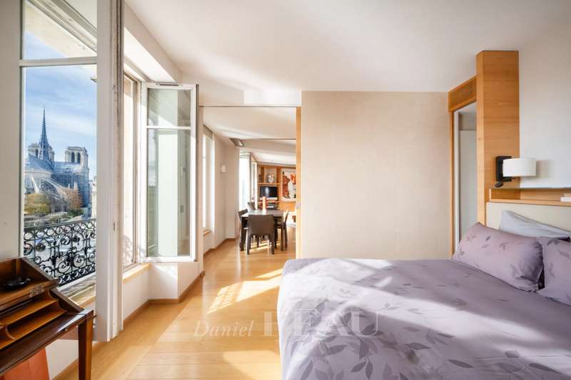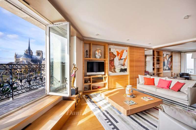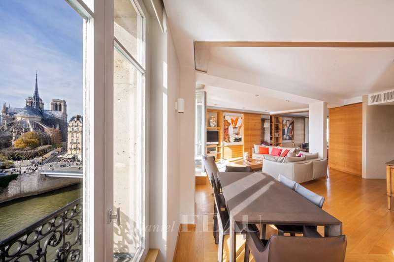 Prestigious Quai d’Orléans, on the capital’s historic Ile Saint Louis. This exceptional fully south-facing apartment offering 190 sqm of living space as defined by the Carrez Law is on the 5th floor of an elegant freestone building with a caretaker and a lift. Commanding an open view of the Seine and iconic landmarks, it includes a spacious living/reception room bathed in sunshine and opening onto a balcony, two kitchens, four bedrooms and three bathrooms. Cellar.