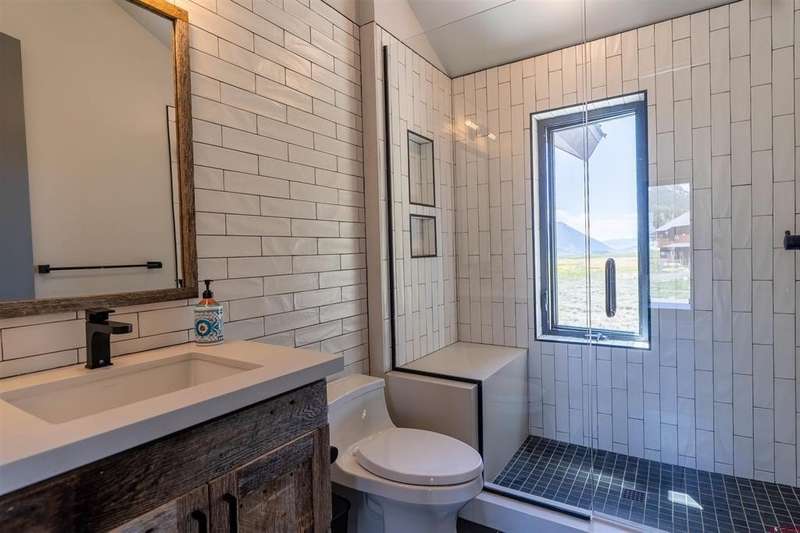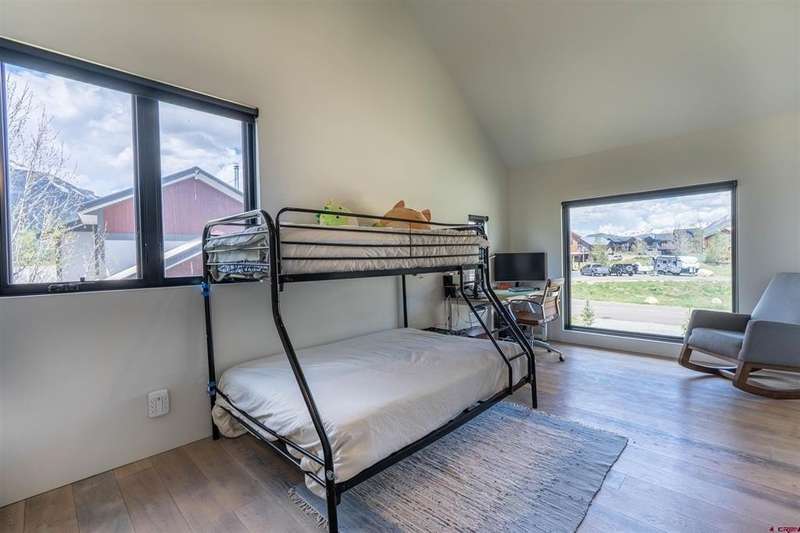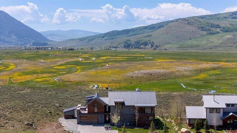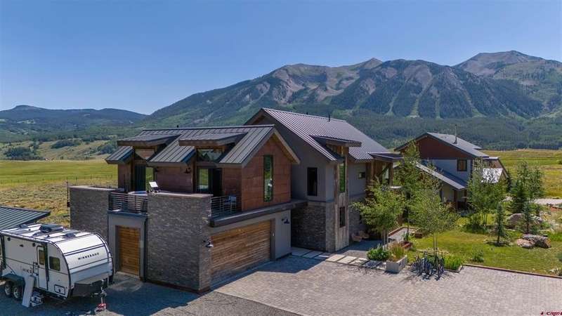 Bet Egelhoff, Bluebird Real Estate, LLC, C: 970-306-5556, bet@bbre1.com, www.crenmls.com: Welcome to 470 White Stallion: One of the finest homes in Buckhorn Ranch. This exquisite and modern mountain home was fully custom built in 2015, and thoughtful consideration went into every single detail, material and finish. Sitting on a double lot, and backing up to HOA owned open space, the views and privacy are unmatched. Step through the accordion style, floor to ceiling glass doors from the living room onto the covered back porch and take it all in while sitting by the exterior wood burning fireplace. No expense was spared during construction, with high-end finishes like trimless floors, windows, and doorways for a modern look; quartz countertops and hardwood floors throughout; extra tall ceilings, a steam shower, heated jetted tub, and Japanese toilet in the primary bathroom; a double sided indoor gas fireplace, smart blinds, smart lights, large ceiling fans, and high-end appliances. The primary bedroom and en-suite five-piece primary bathroom are on the main floor, with four more bedrooms on the second floor, each spacious and bright. Two bedrooms connect via a Jack-and-Jill full bathroom with a double vanity and a laundry chute, while the other two bedrooms share a 3/4 bathroom. This home was engineered and designed for solar gain in the winter and not in the summer, which results in passive heat during the cold months and a cool interior in the warmer months. With in-floor and in-wall heat, you won’t find a cold spot or feel a draft anywhere. The HRV (heat recovery ventilation) system circulates the air in the home and improves its quality. Step onto the second floor deck and enjoy the hot tub (new as of 2 years ago) and views of Crested Butte Mountain and beyond. The detached office space is roughly 150 square feet, and is heated, insulated, and has electricity. It could also be an art or yoga studio, or anything else you can dream up. The oversized 2-car garage offers plenty of room to park and store gear. In addition to the extra large paver driveway with ample off-street parking, there is a dedicated parking spot next to the garage for a camper, boat, or snowmobiles. With only one owner, this home has been meticulously maintained and still has a new feel to it. Offered fully furnished, it is turn-key and ready for immediate enjoyment. Buckhorn Ranch is a growing community with neighborhood amenities including tennis and pickleball courts and a park with a covered picnic area and a playground. All this, just a short drive from downtown Crested Butte, world-class skiing at Crested Butte Mountain Resort, the Robert Trent Jones II-designed golf course, and endless hiking and mountain biking trails to access from your home. Life in Buckhorn Ranch offers the perfect balance of calm, convenience, and adventure. What are you waiting for? Schedule your showing today and start living your dream mountain life!