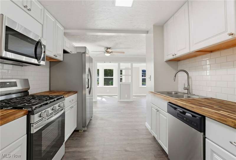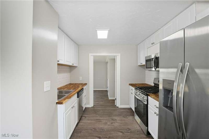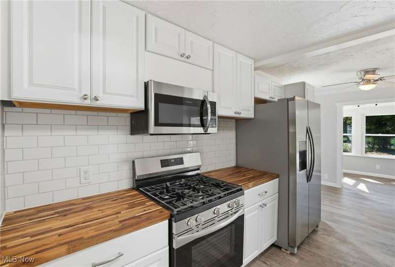 Affordable & stylish, this bright white modern home with bold black accents sits on a quiet road in desirable Avon Lake. Inside, you'll find 3 comfortable bedrooms plus an open loft upstairs that easily flexes as a fourth bedroom, office, or entertainment room. The first-floor primary master suite includes a full bath with a tub-shower combo and patio doors that open to the backyard. A second full bath also features a tub-shower combo, and the first-floor laundry adds everyday convenience. The beautiful kitchen showcases white cabinetry, warm butcher block countertops, and stainless steel appliances, flowing into an open living room with plenty of space for a formal dining area?perfect for gatherings and everyday living. Don't miss out on this charming cottage conveniently located close to all amenities.