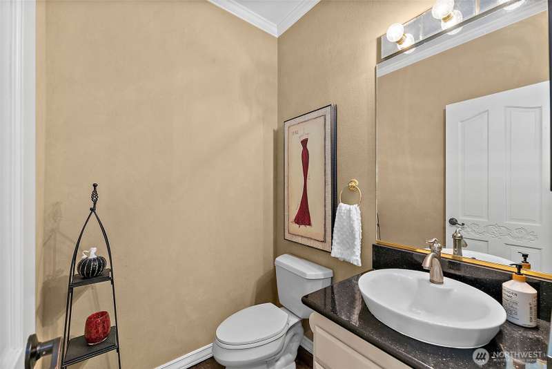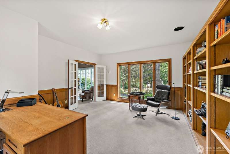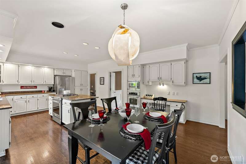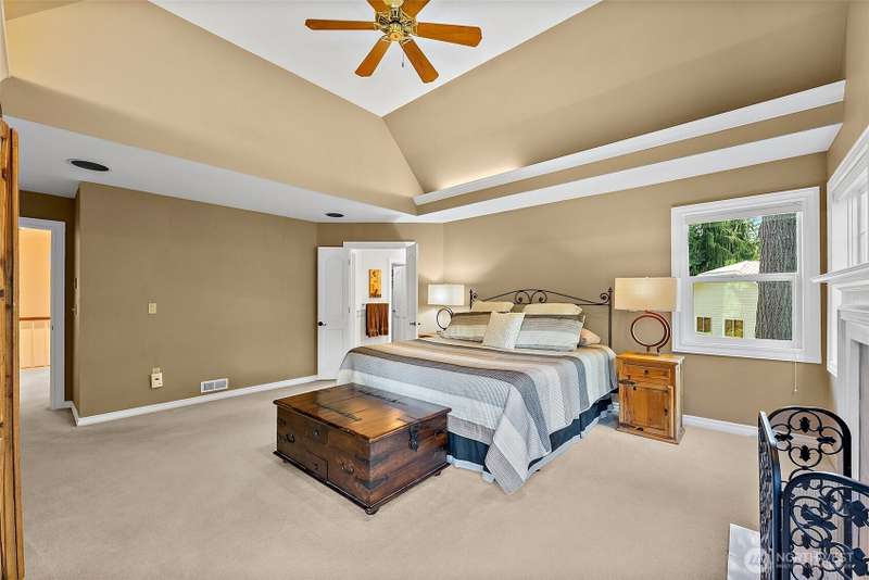 Luxury & quality are abundant in this beautifully updated four-bedroom home in Canterwood. Coffered ceilings & wainscoted walls are present throughout the house. Entertain in the gourmet kitchen with an island breakfast bar, hardwood floors, granite counters, & stainless steel appliances. The living room offers built-in cabinets & a floor-to-ceiling fireplace hearth. Pamper yourself in the 5-piece primary bathroom with a radiant heated floor & garden tub. The spacious den is perfect for a home office & includes a large bookshelf. The expansive tiled patio is excellent for BBQs or relaxing. The Canterwood community offers first-rate facilities, including tennis courts, a swimming pool, an 18-hole golf course, clubhouse, restaurant, & more!