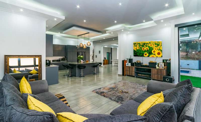 Brand New throughout. Ultra modern open plan living. Double volume grand entrance....Master chef kitchen ready for all occasions, Big center island, with all the space and extras you need. Separate scullery area with double sink and place for all your appliances.
