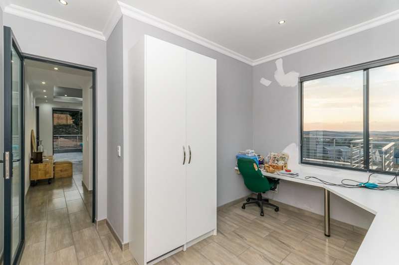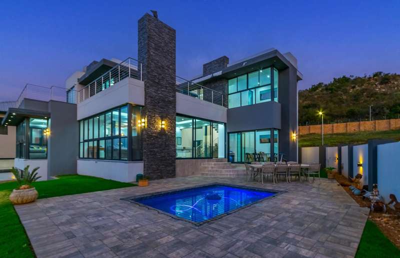 Only been lived in for a year! Top class security estate, ideally located at the footstep of the Krugersdorp Mountain range. Views as far as the Magaliesburg....