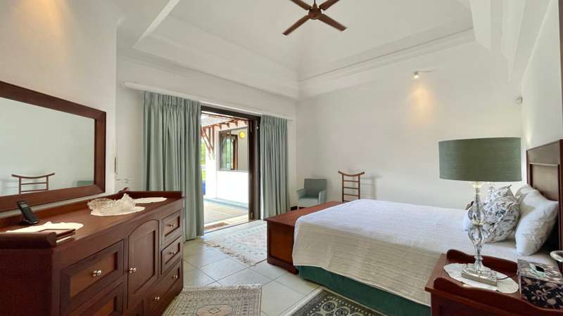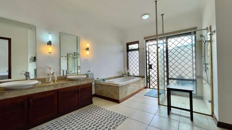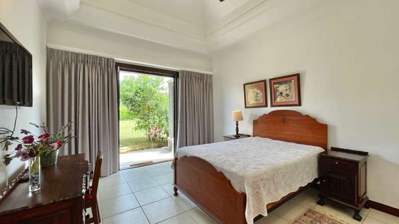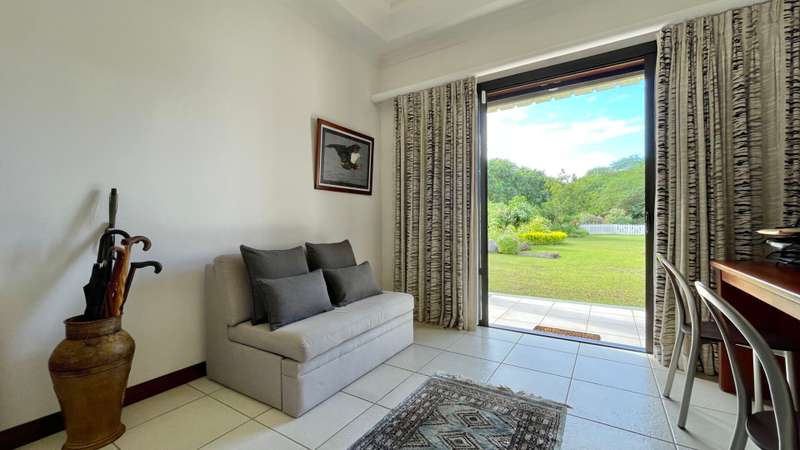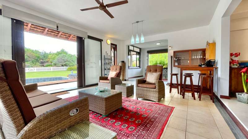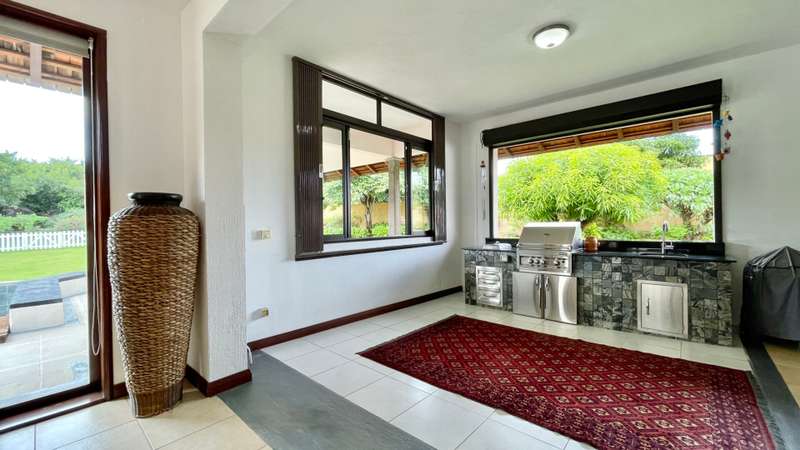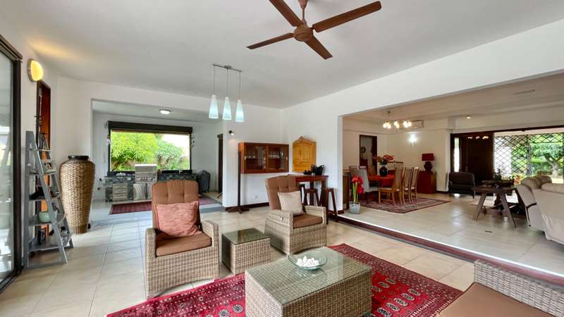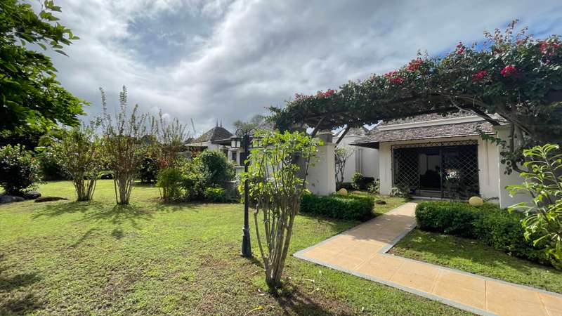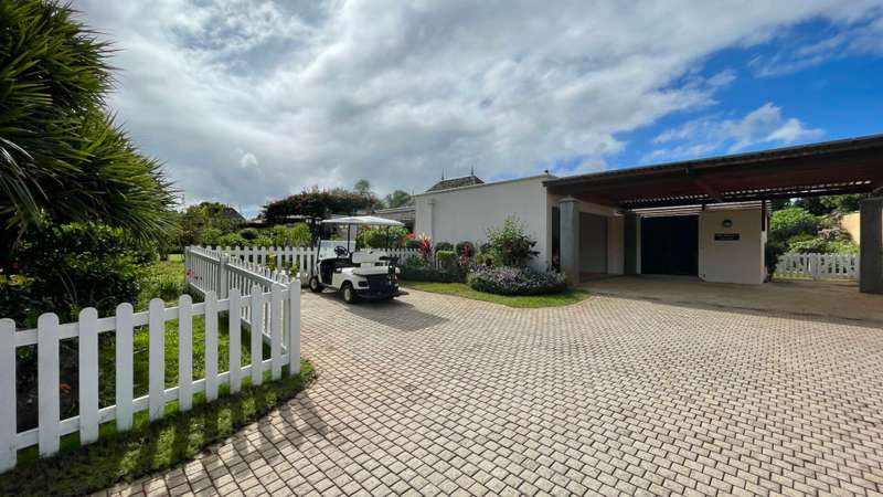 Located in a sought-after golf estate on the West Coast of Mauritius, this 455 m2 villa on a 3215 m2 plot of land, benefits from a natural tropical environment, where residents have exclusive access to the domain's golf and beach club. It offers a well-kept garden and inviting pool. An overflow pool shimmering in the warm sunlight, neighbours a covered kiosk, ideal for dining in harmony whilst shaded from the Mauritian sun. The spacious kitchen, with adjacent pantry and laundry room, leads practically to the double garage and carport. Offering Mauritian residency, this well-maintained villa is the ideal property for golf and sea lovers, as well as a family seeking both space and proximity to the amenities and activities of the area.