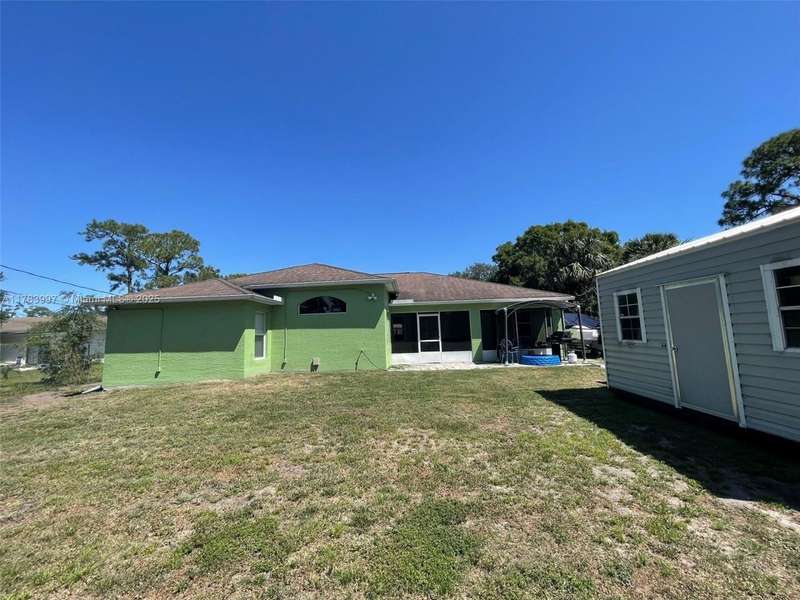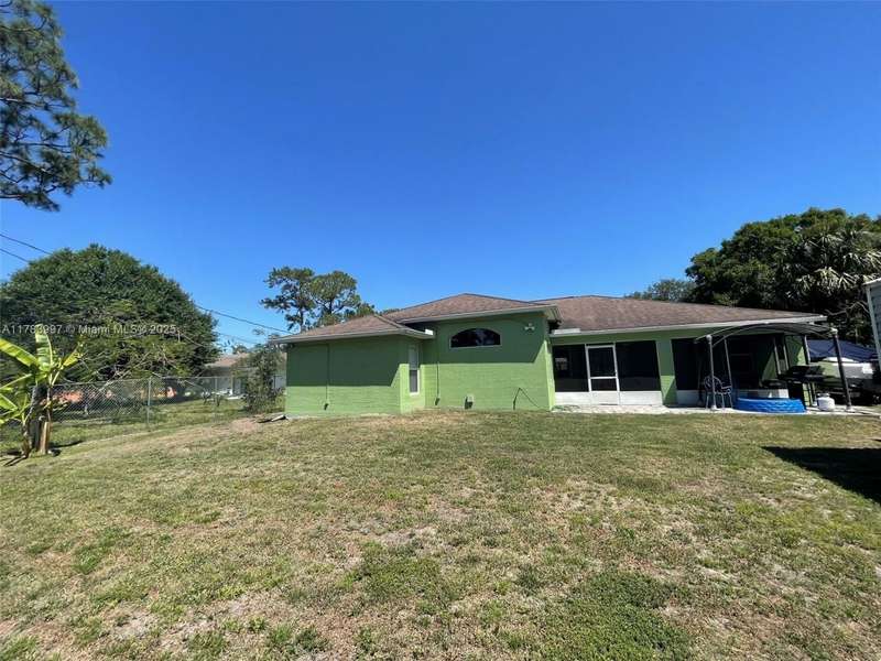 WOULD YOU LIKE PEACE AND QUIET AND TONS OF SPACE TO CALL YOUR OWN? THEN THIS HOME IS FOR YOU !!! THIS LOVELY FOUR BEDROOM, TWO FULL BATH HOME SITS ON �¼ ACRE WITH NO NEIGHBOR ON ONE SIDE!! OPEN AND SPACIOUS LIVING AREA, LOTS OF NATURAL LIGHT IN THE KITCHEN WITH PLENTY OF COUNTER SPACE AND CABINETS, PANTRY, OPENS TO FAMILY ROOM ? 3 WAY SPLIT FOR BEDROOMS WITH PRIMARY SUITE IN ITS OWN WING ? DUAL SINKS, SOAKING TUB AND WALK IN SHOWER, HUGE WALK IN CLOSET. TWO MORE BEDROOMS SHARE A BATHROOM IN ANOTHER WING, AND FOURTH BEDROOM BY ITSELF. SCREENED PATIO LEADS TO EXPANSIVE FULLY FENCED BACKYARD WITH LARGE SHED. DOUBLE GATE ENTRY ON BOTH SIDES ALLOWS FOR STORAGE OF BOATS, KAYAKS. MANGO TREE READY TO BLOOM WITH FRUIT! NO HOA SO YOU CAN DO WHAT YOU WISH AND ENJOY YOUR SLICE OF PARADISE!