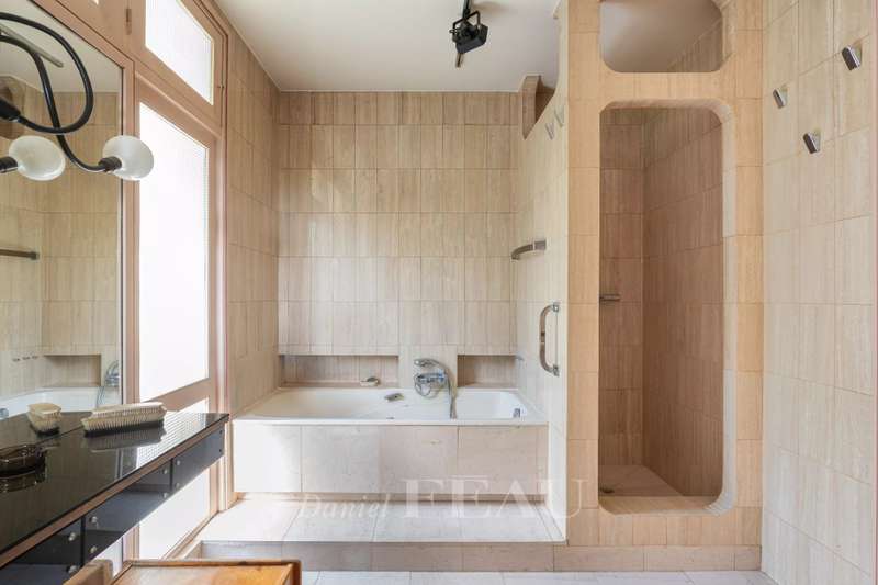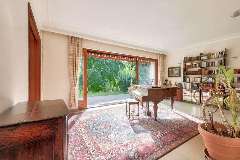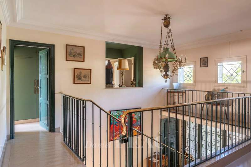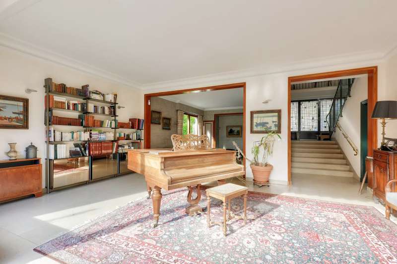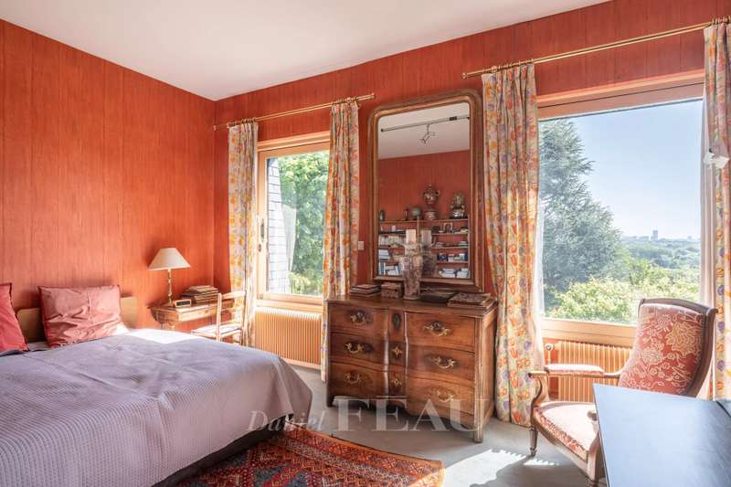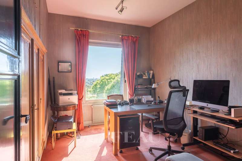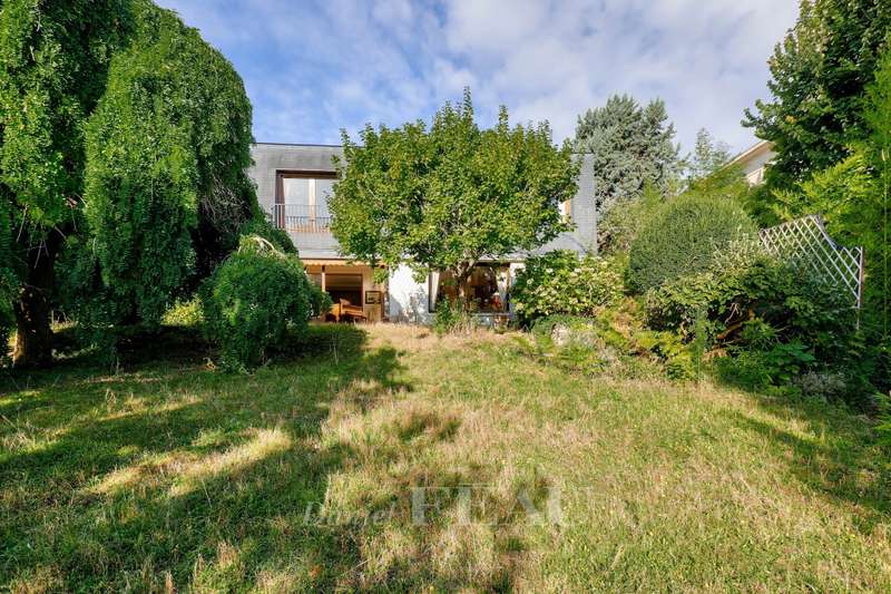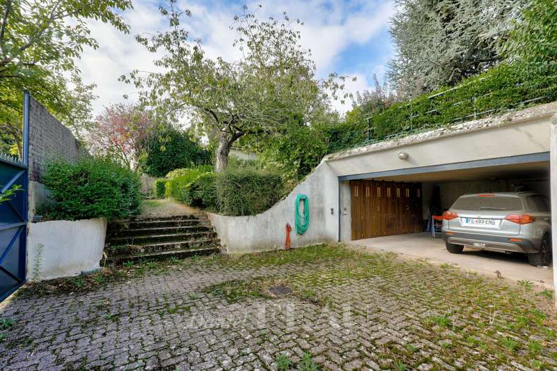 This near 220 sqm mid 20th century architect-designed property is located near the station in one of the Val d’Or neighbourhood’s most beautiful streets. Set in a 1400 sqm plot, it includes a spacious living/reception room with a fireplace opening onto the garden, a dining room, a separate kitchen, and a bedroom with a shower room. Upstairs are two spacious suites each with a bathroom, a 13 sqm bedroom and a study. The bedrooms enjoy superb views of the capital and the Eiffel Tower. On a basement with a utility room, a boiler room and a possible study or recreation room. With parking space for several cars. The property benefits from two entries and two addresses, and division would be possible.