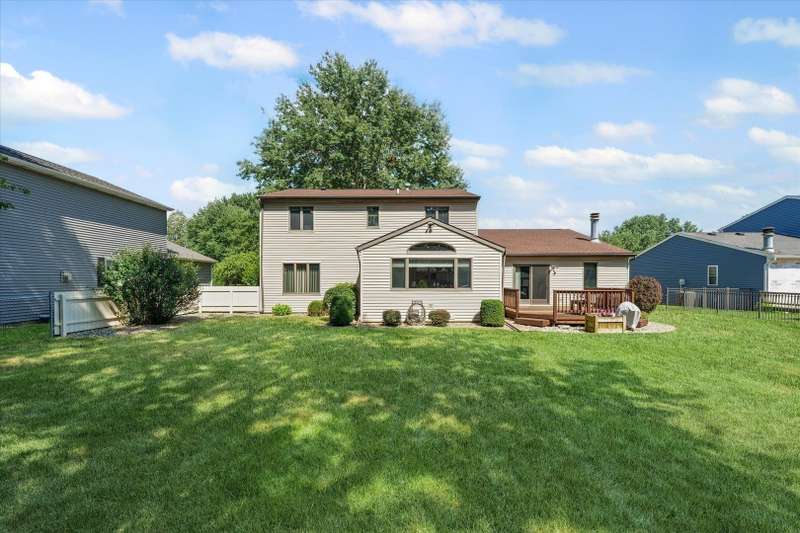 This beautiful home has been lovingly cared for and meticulously maintained for the next homeowner and is ready for its next chapter. The sun room addition completes the first floor layout that includes a large living room, eat-in kitchen with wine cooler and pantry, spacious dining room, and family room with a built-in fireplace. Additional features include a central vac system and pre-wired in-wall speaker system. A detailed list of professional cleanings and home improvements throughout the years is available. New roof installed in 2022, new siding in 2015, and new stove and refrigerator in 2024. Be sure to step out onto the back deck to enjoy the view of the spacious fenced-in backyard complete with well-manicured vegetable and flower gardens and a shed for extra storage. The home has been pre-inspected. Schedule your showing today!