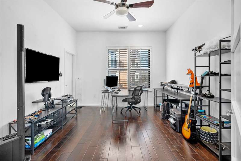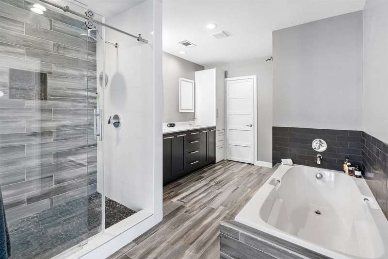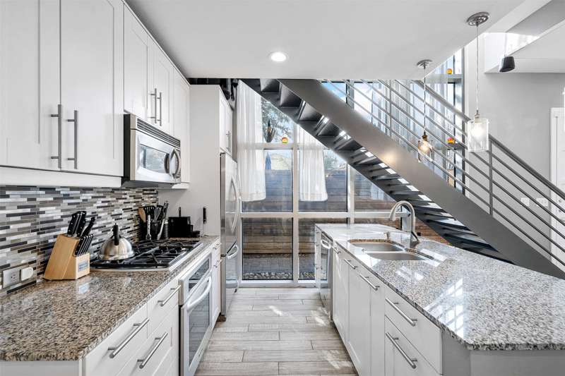 Discover the perfect blend of style and convenience in the cultural heart of Fort Worth with this stunning corner townhome. Situated next to the pool and featuring one of the largest backyards in the community, this home offers urban living at its finest. The expansive two-story windows flood the space with natural light, enhancing the homes open and airy ambiance.The interior showcases farmhouse-inspired charm with a full shiplap accent wall in the living and dining area, seamlessly connected to the open kitchen. Equipped with stainless steel KitchenAid appliances, granite countertops, and custom lighting and fans, the kitchen is both functional and stylish. Upgraded flooring throughout includes wood-look tile downstairs and in wet areas, with rich hardwoods upstairs.The extra-large owners suite is a private retreat, complete with an updated double vanity, a stone floor shower, a luxurious six-foot soaking tub, and ample storage. A custom closet system adds an extra touch of luxury. The second bedroom is equally impressive, offering a full bath, custom Elfa shelving.Step outside to an entertainer's paradise, featuring a double patio, a full outdoor kitchen, and a gated side yard perfect for relaxing or hosting gatherings. The oversized two-car garage provides additional convenience, while the unbeatable location places you close to Trinity Park, shopping, dining, and the vibrant W 7th district.This home is a rare find, combining exceptional design, thoughtful upgrades, and an unbeatable location. Don't miss the chance to make it yours!