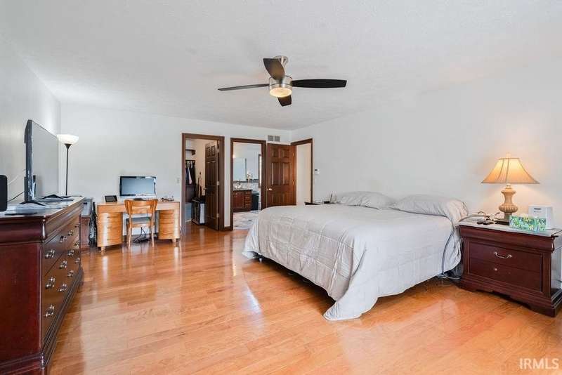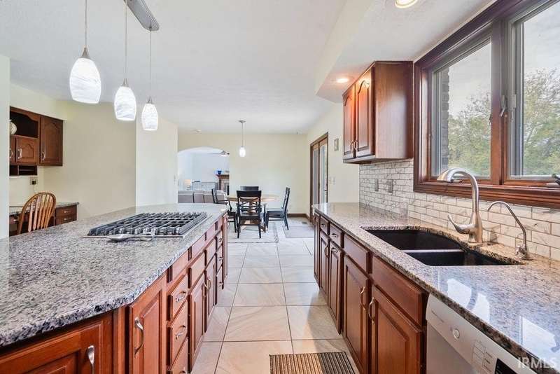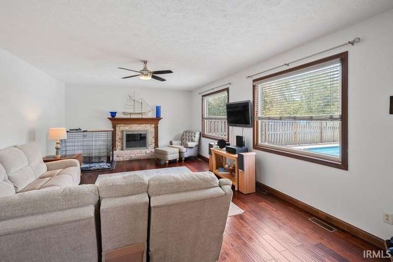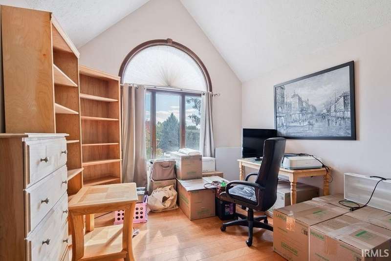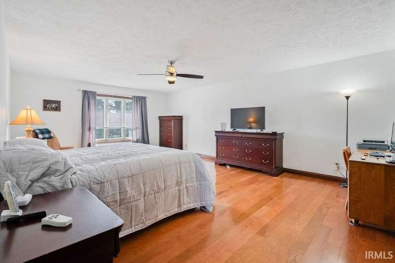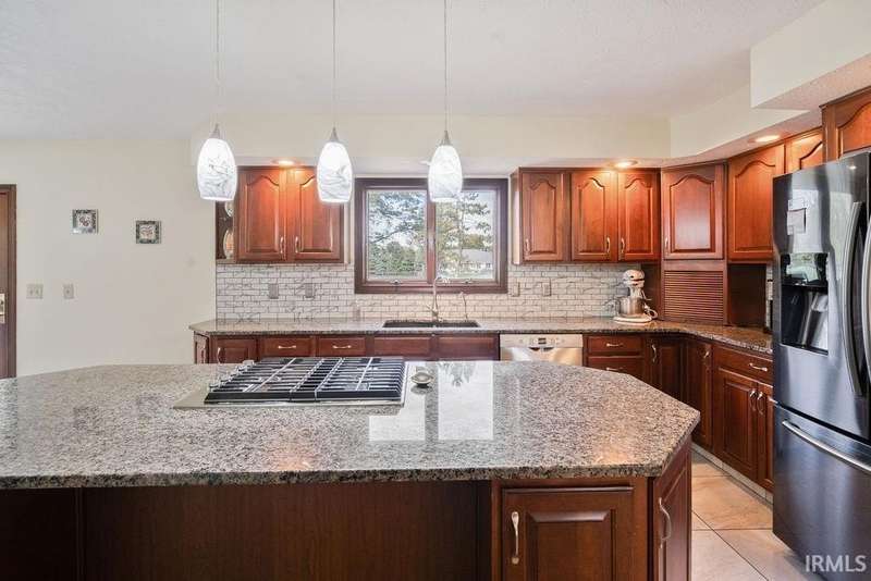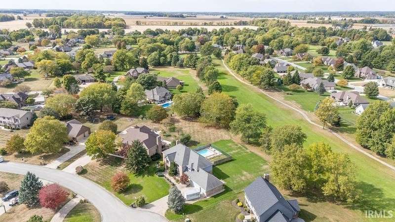Welcome to this beautiful brick 2-story home with a full finished basement, located in the highly desirable Moors of Chippendale Subdivision and Western School District! Nestled on over half an acre, this home offers scenic views of hole #6 at Chippendale Golf Course and features an in-ground pool, perfect for entertaining or relaxing with family and friends. Step inside to a grand foyer entry that leads into a thoughtfully designed main level. The home office features built-in bookshelves, ideal for remote work or study. Enjoy gatherings in the spacious vaulted-ceiling living room, elegant formal dining room, or the cozy step-down family room with a gas fireplace. The updated eat-in kitchen is a chef’s dream with granite countertops, stainless steel appliances, large island, and a built-in desk—perfect for organization or homework time. A large main-floor laundry room adds extra convenience. Upstairs, the master suite offers a luxurious retreat with a generous bedroom, spa-like bath featuring a dual sink vanity, tiled shower, jetted tub, and a walk-in closet. Three additional bedrooms are also located on the upper level, two with their own private en suite bathrooms, perfect for guests or family. The fully finished basement boasts brand new carpeting, expansive living space for a home theater, gym, or recreation area, plus ample storage. An attached 3-car garage and quiet cul-de-sac location complete this exceptional home!