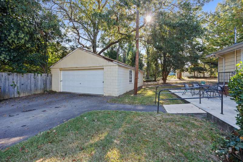 Opportunity rings with this home full of possibilities! Desirable, mostly one-level brick vintage 4-bedroom, 2-bath home with over 1,800 sq. ft. plus the extra perk of a walk-out basement, another extra 800 sq. ft . Roof replaced approx. 3 years and HVAC 5/6 years, the essentials are in place—ready for you to add your own style, upgrades, and personal touch. The floor plan offers flexibility for today's living, featuring a living room with brick fireplace and with easy access to a large cement patio—perfect for outdoor gatherings. The 800 sq. ft. walk-out basement with vintage broken-tile flooring and its own patio provides even more options—game room, studio, workshop, or extra storage. For hobbyists or car lovers, the 700 sq. ft. detached cement block garage/workshop is worth the effort to renovate—offering space for vehicles, projects, storage and tools. All of this just minutes from Historic Downtown Aiken, USC Aiken, the hospital, shopping, and dining. A rare find in today's market, this property delivers affordability, space, and the chance to build equity. Sold in present condition. Don't miss your opportunity to own a brick home at this price point! Buyer to verify all information deemed important, including but not limited to measurements, square footage, zoning, and schools.